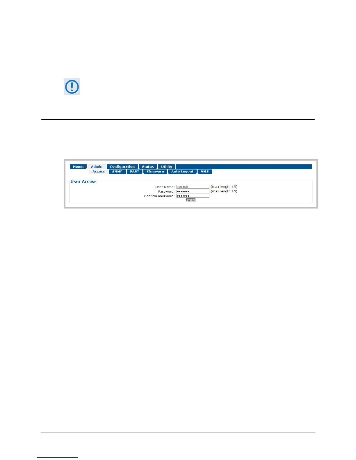 Click the Access, SNMP, FAST, Firmware, Auto Logout, or VMS tab to continue.