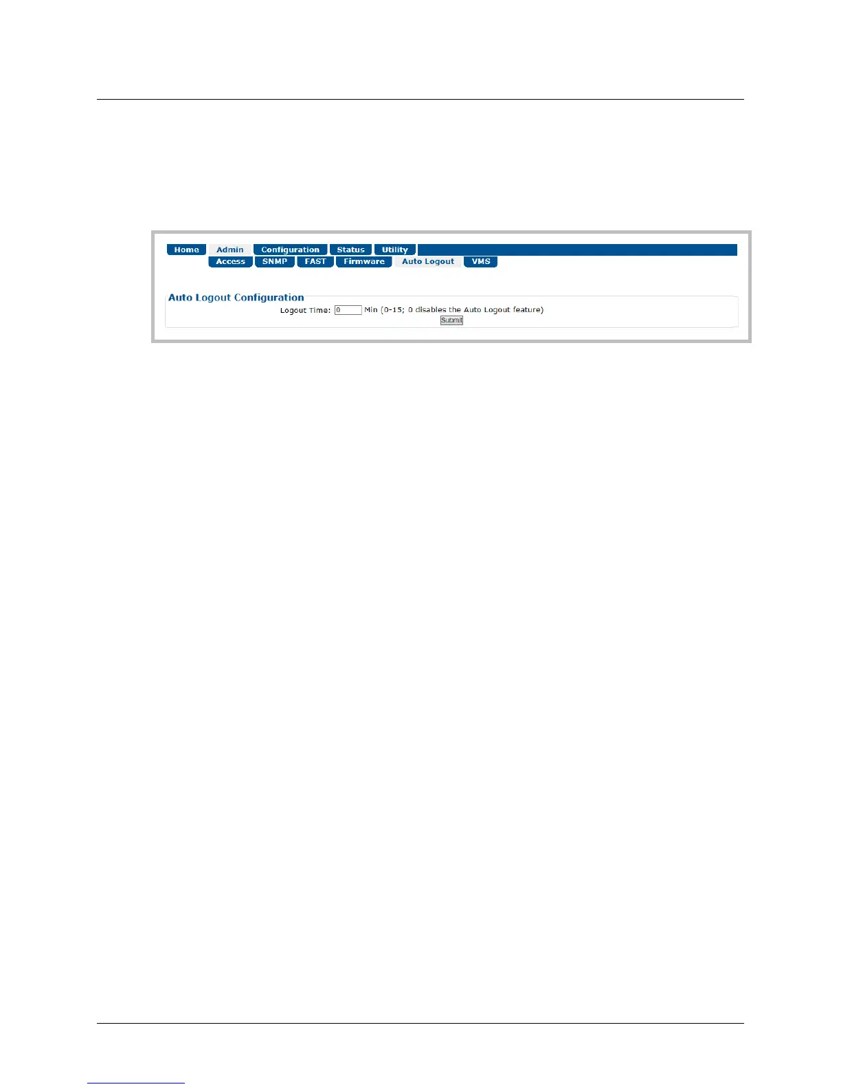 Figure 6-10. Admin | Auto Logout Page