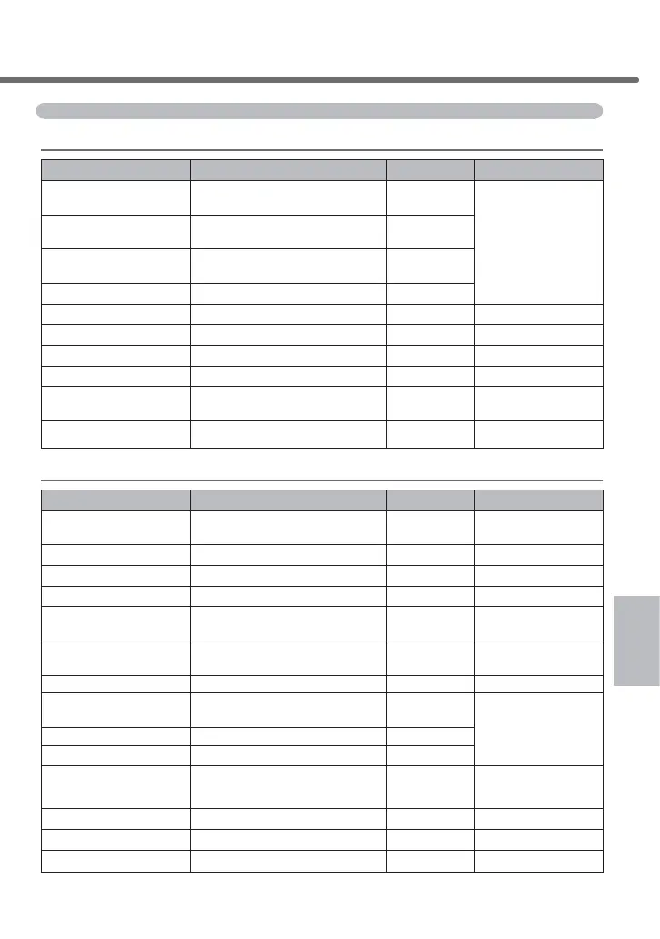 List of function settings