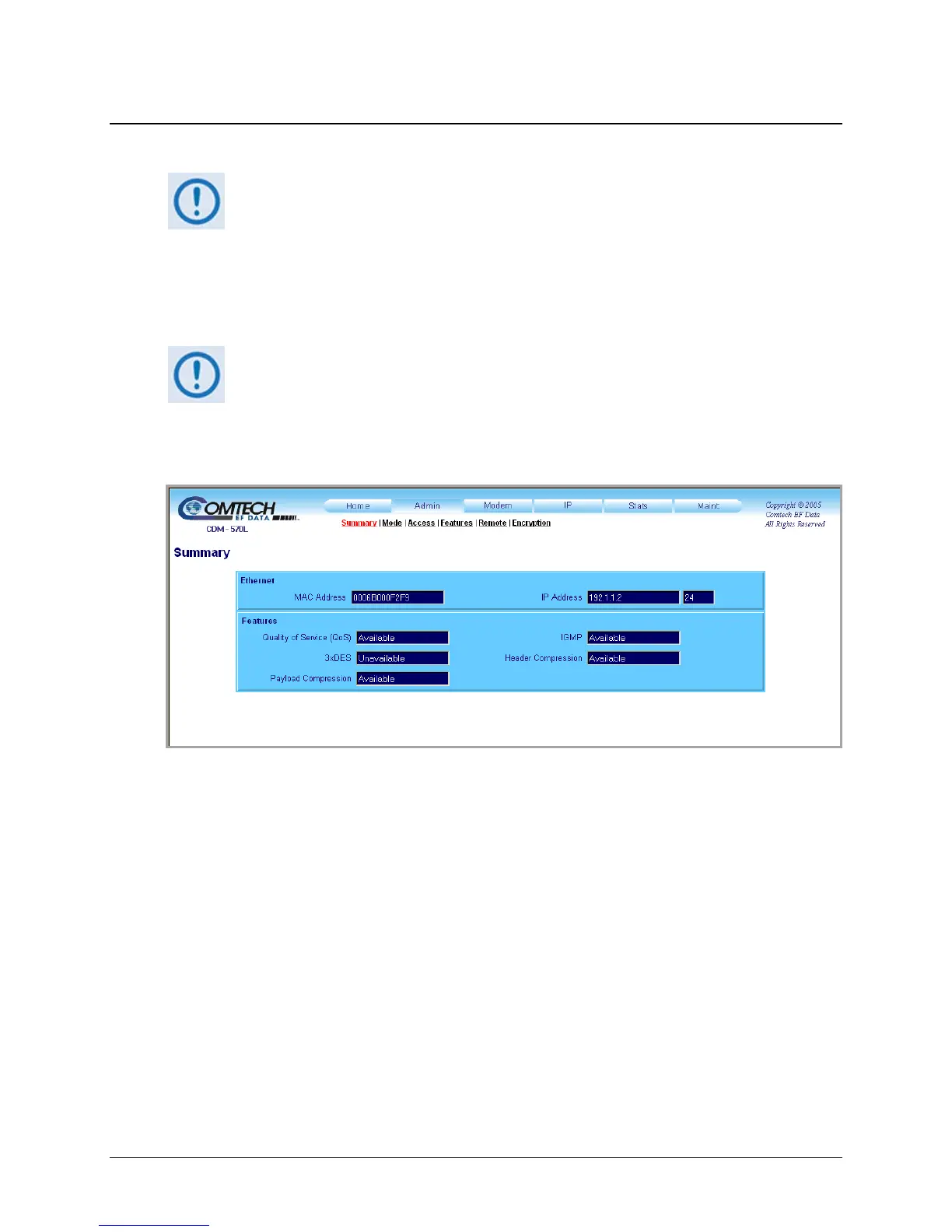 Use this read-only page to obtain information for the assigned MAC and IP Addresses and the