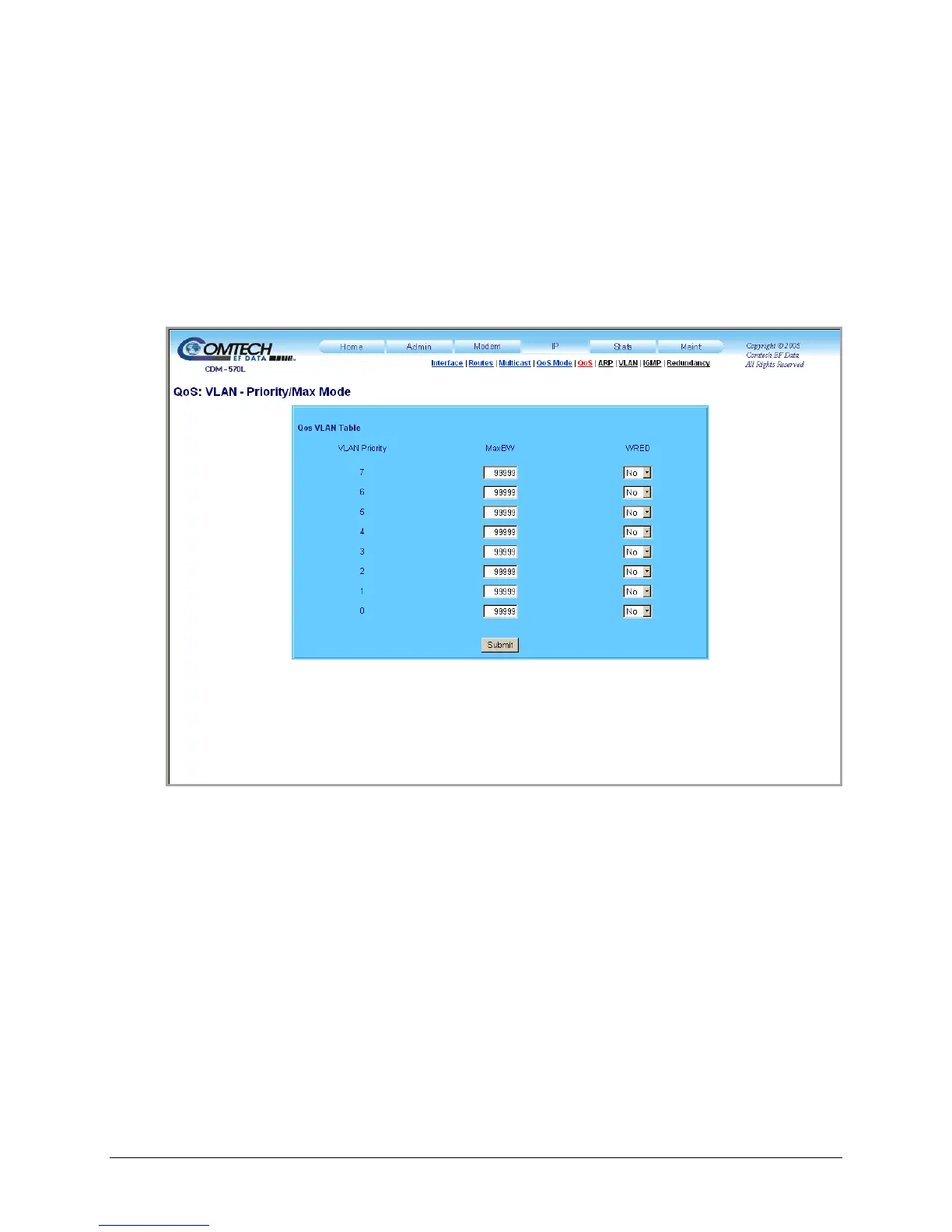 This page is used by the IP Module QoS to specify the maximum bandwidth for each VLAN