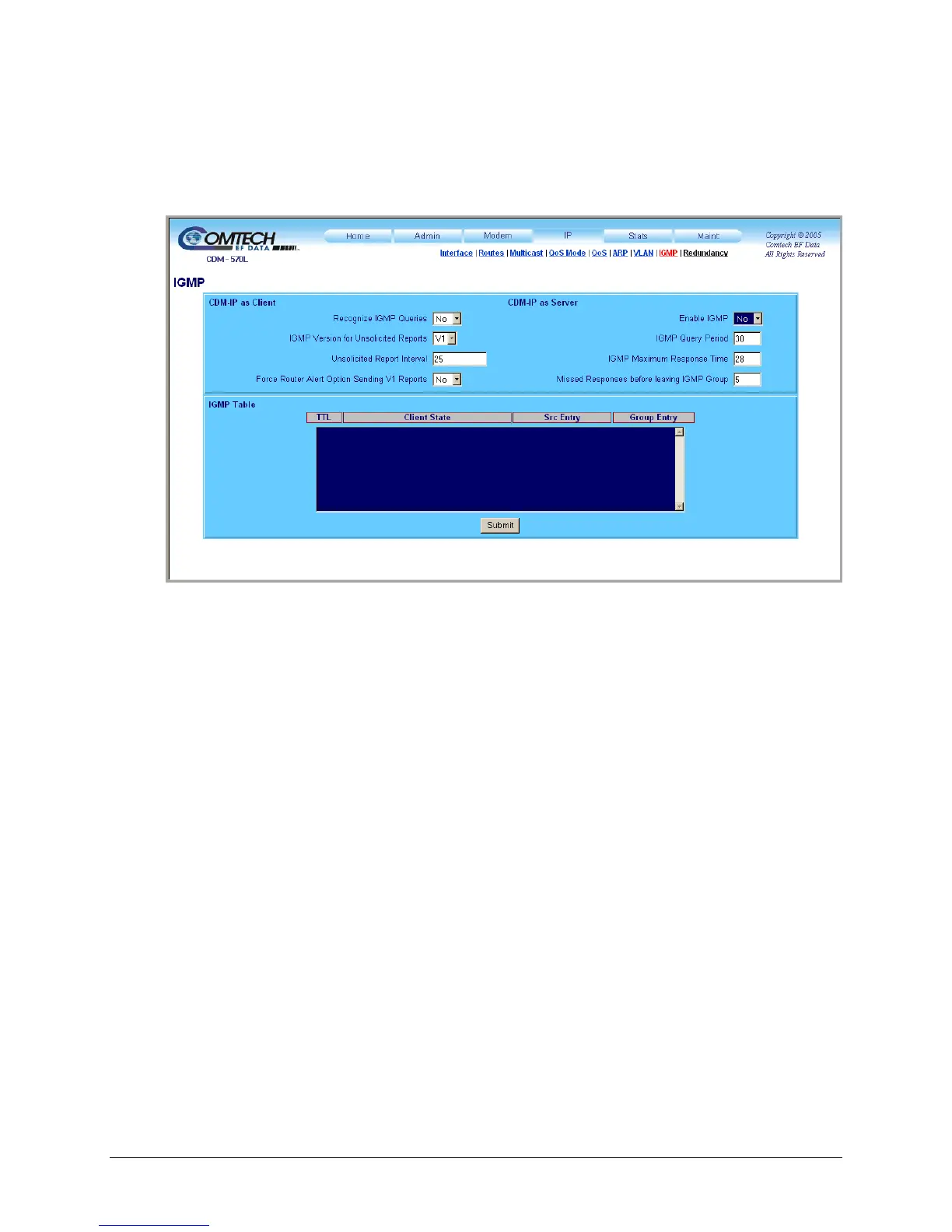 This page enables the use of Internet Group Management Protocol (IGMP) with configured