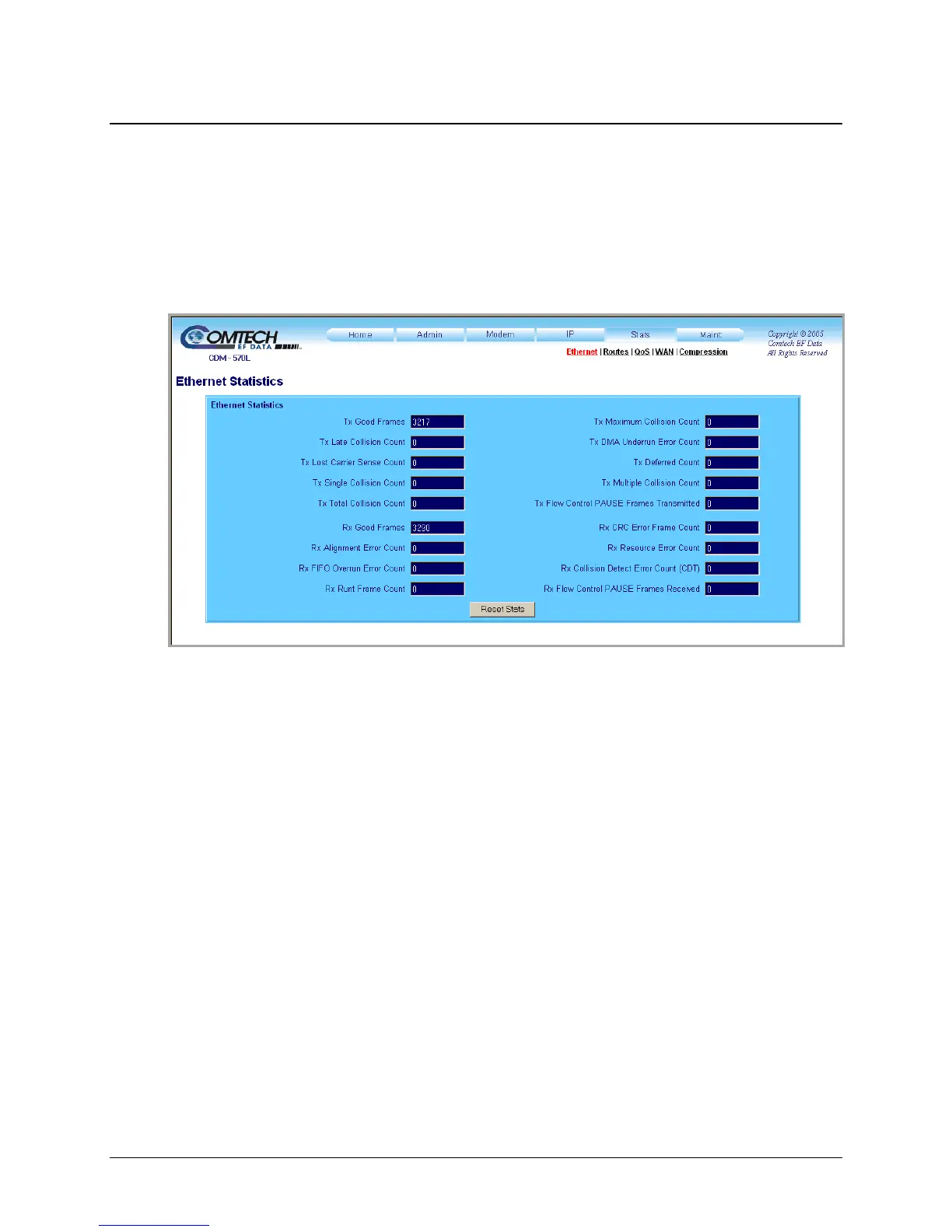 Use this read-only page to obtain current operating statistics for Ethernet Tx and Rx. Click [Reset