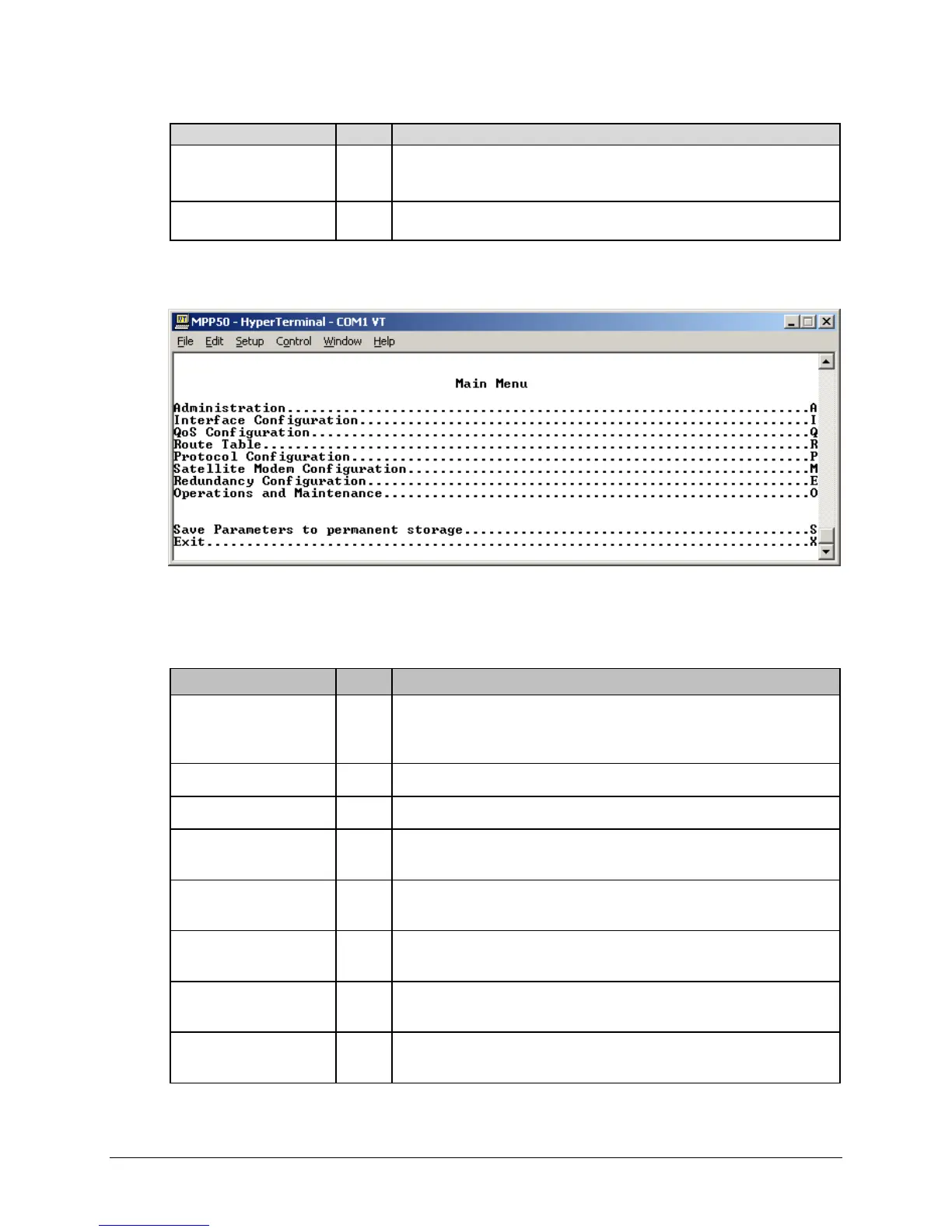 Interface Configuration I Configures the Ethernet and Satellite interfaces.