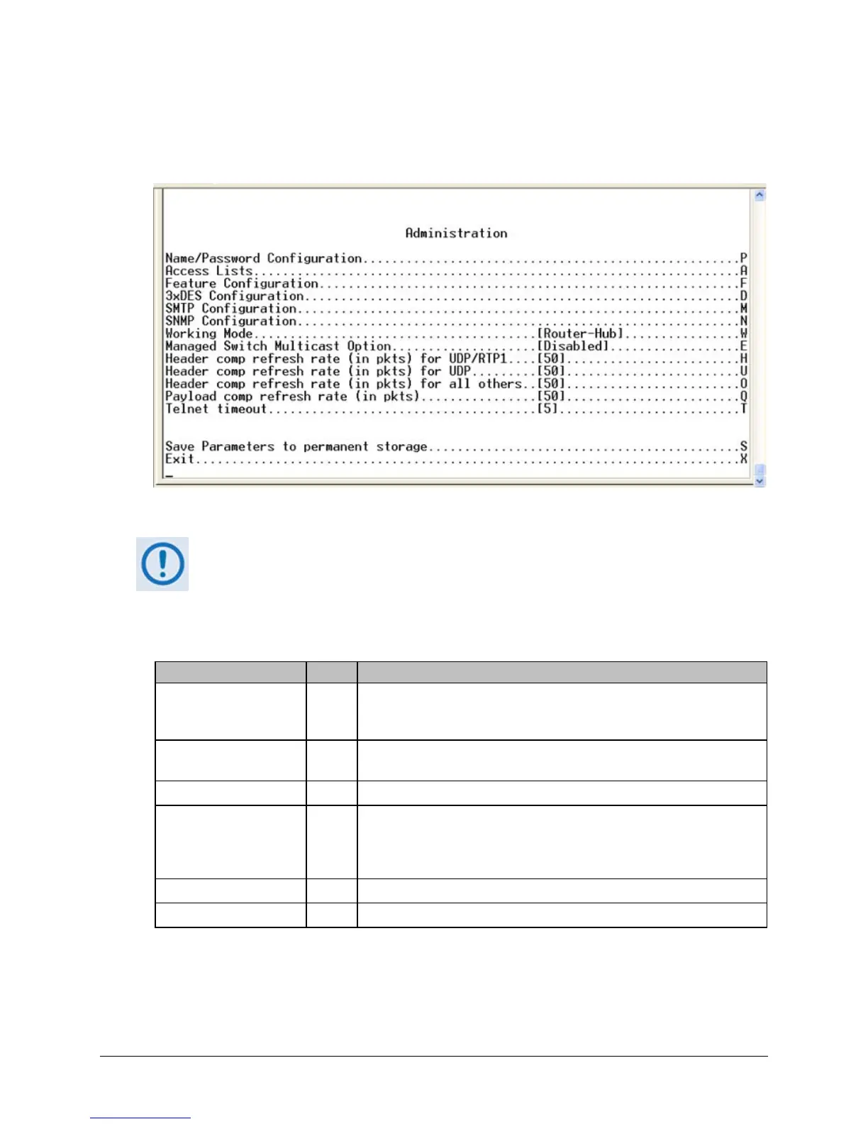 connecting via the Telnet, or HTTP interface. The Administration page is available