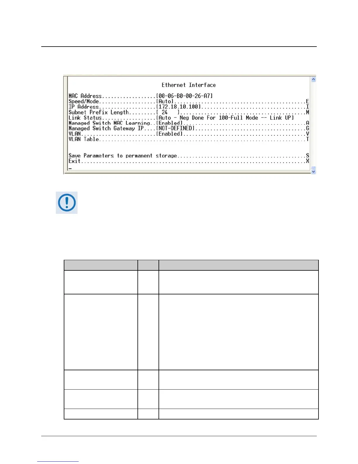 Subnet Prefix Length M Specifies the Subnet Mask assigned to the Ethernet Traffic Interface.