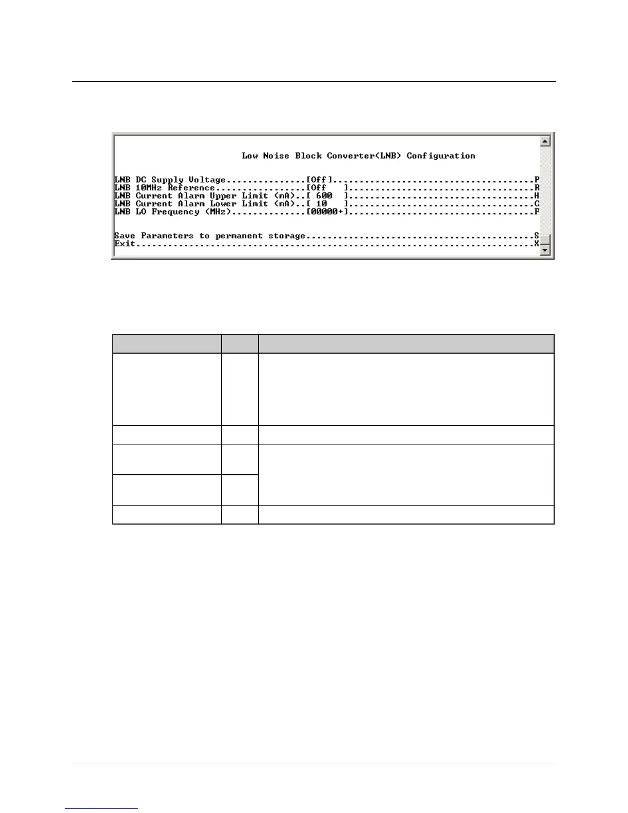 LNB LO Frequency (MHz) F Enter a value from 3000 to 65000, 0 to disable