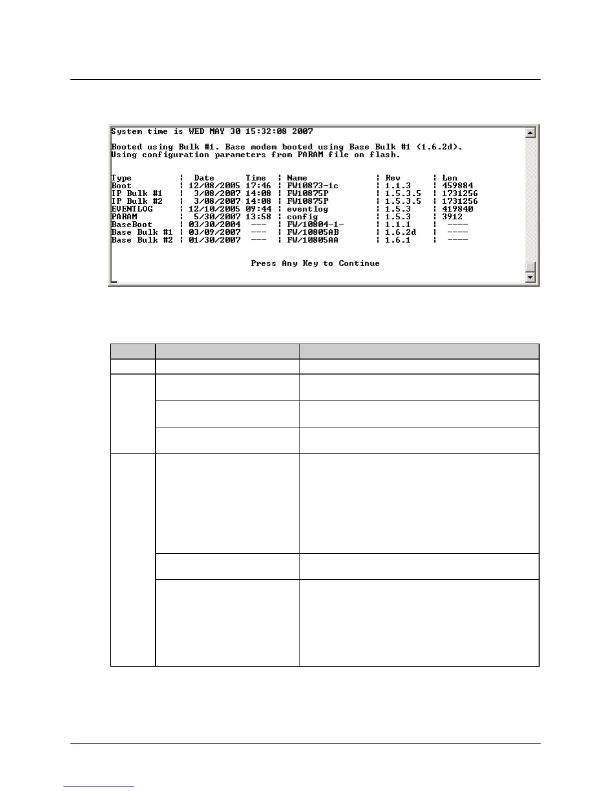Displays Build Date, CEFD FW#, Revision #, and size of each