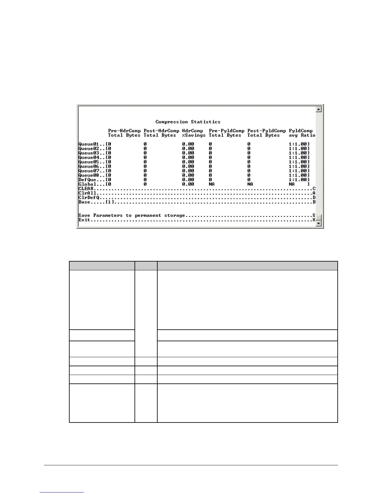 Compression Statistics are displayed by QoS Rule flow Queues. If QoS is not enabled, all the