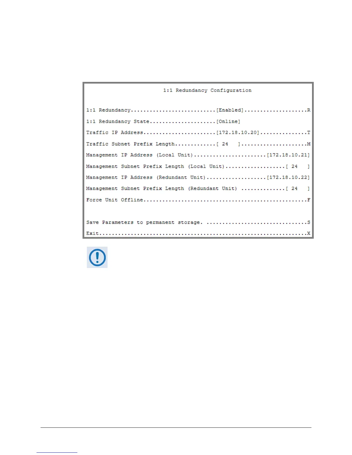 correct IP Address/Mask is displayed for the Local and Redundant Unit. Then you will