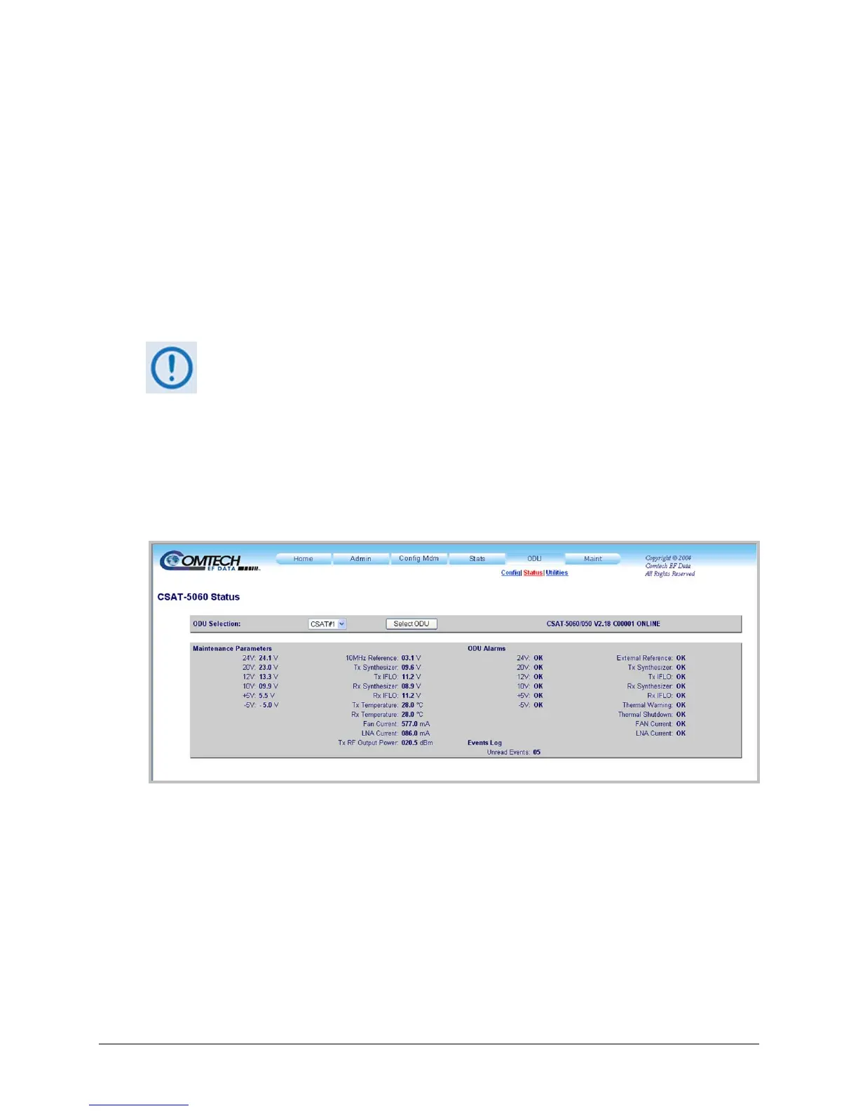 ODU. Use this page to review read-only status information pertaining to the CSAT-5060