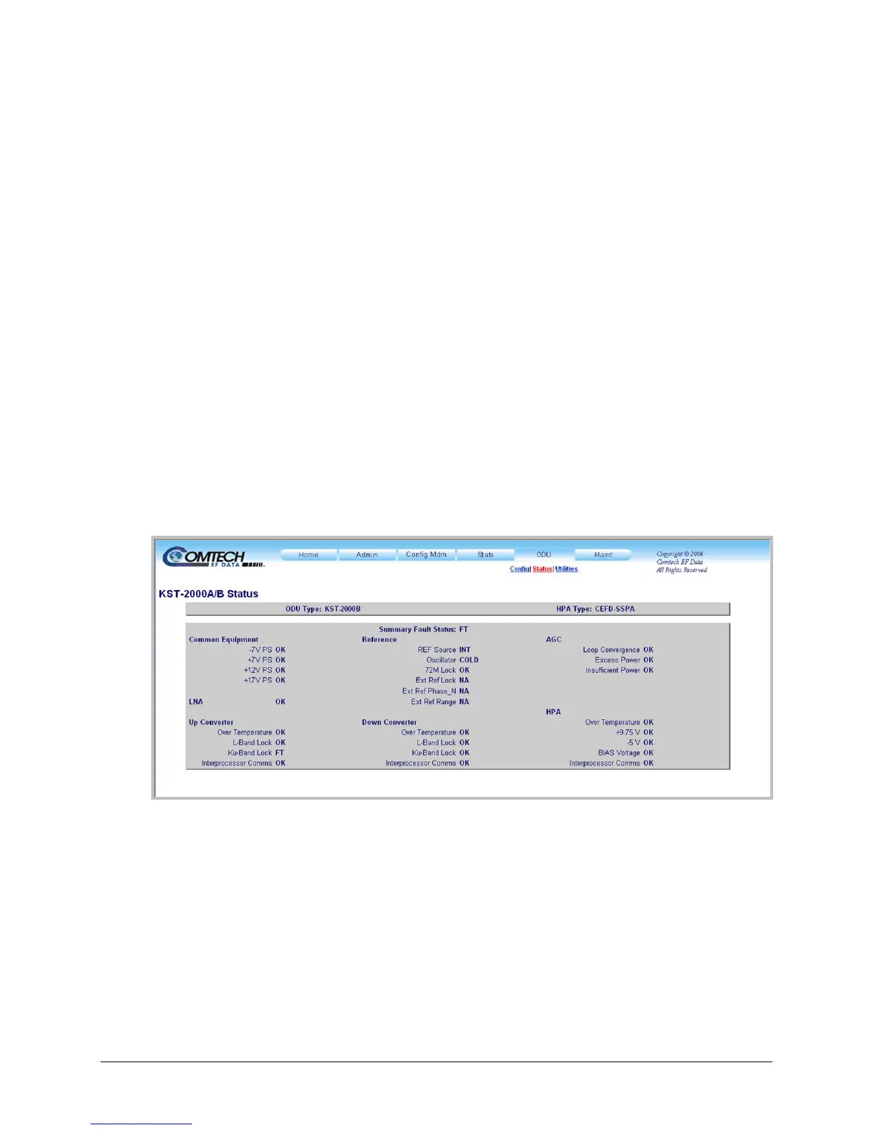 Figure K-8 shows the ‘ODU | Status’ page as it appears with the KST-2000A/B configured as the