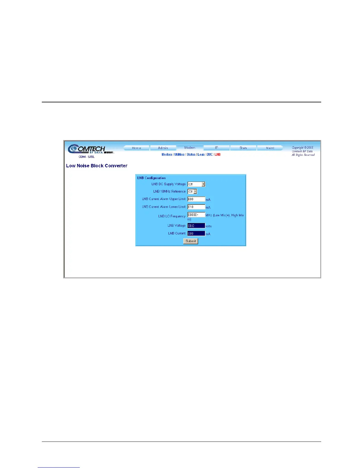 Use this page to configure Low-Noise Block Down Converter parameters, and display the LNB