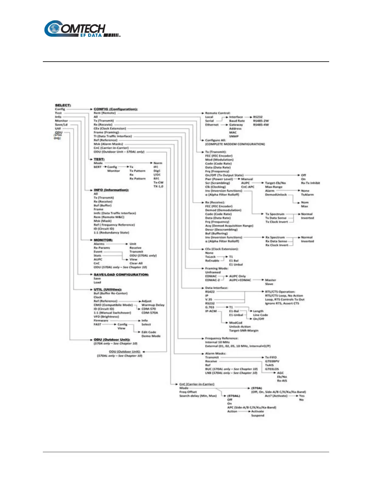Comtech EF Data cdm-570a - Front Panel Operation; Figure 6-2. CDM-570 A;570 AL Principle Menu Tree