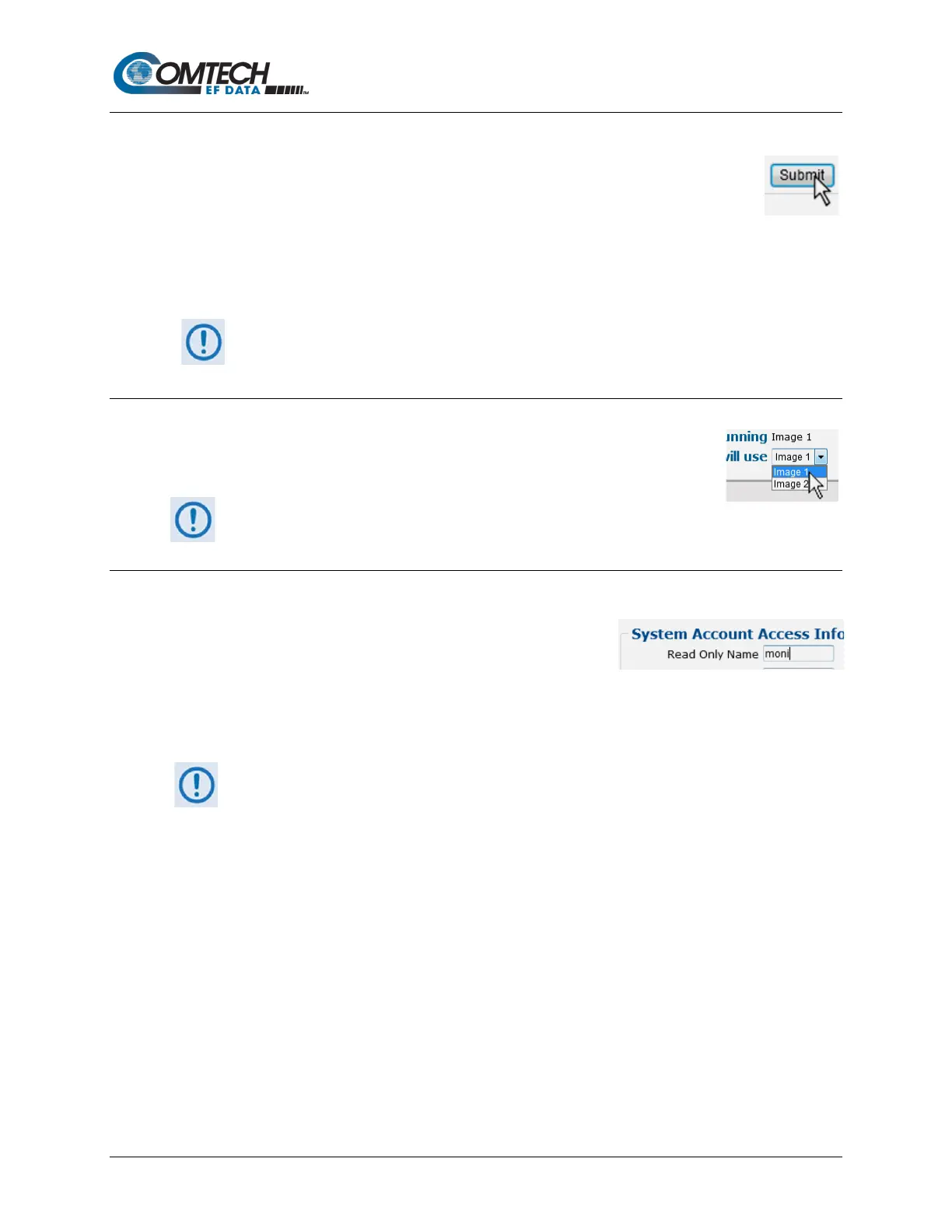 Action buttons are important in the CDM-570A HTTP Interface. Click an action