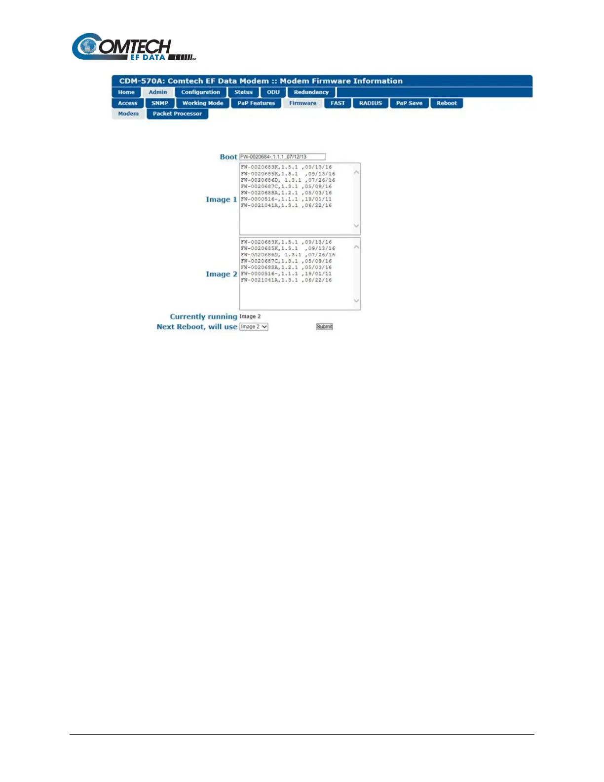 Figure 7-9. Admin | Firmware | Modem Page