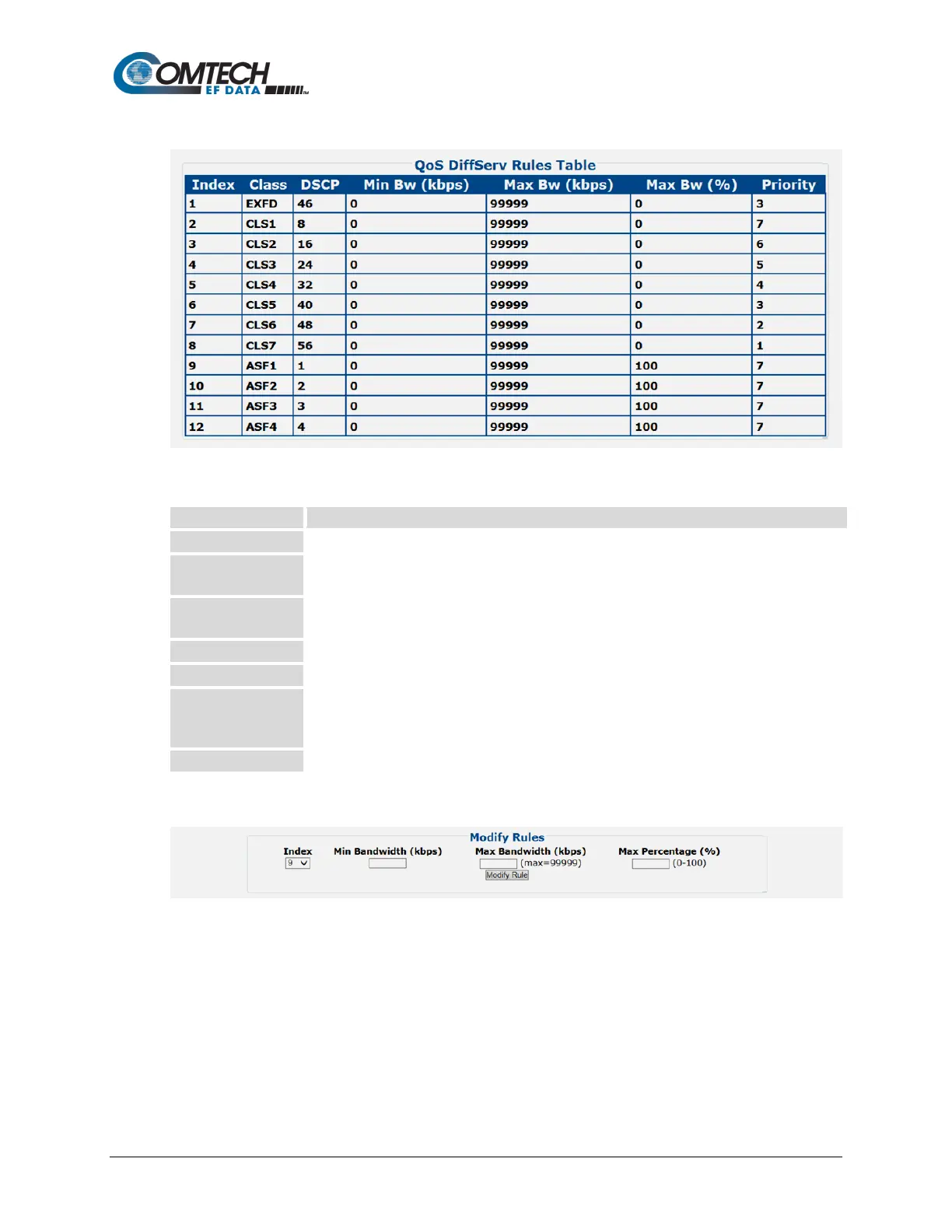 • Min Bandwidth (kpbs) / Max Bandwidth (kbps) / Max Percentage (%) – Entire the