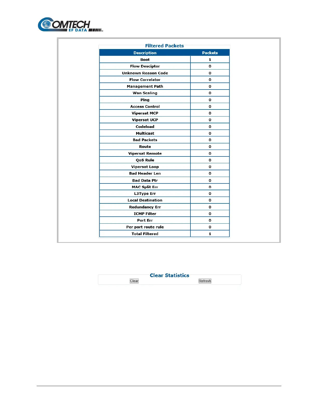 Click [Clear] to erase all existing information and reset the statistics counters. Otherwise, click
