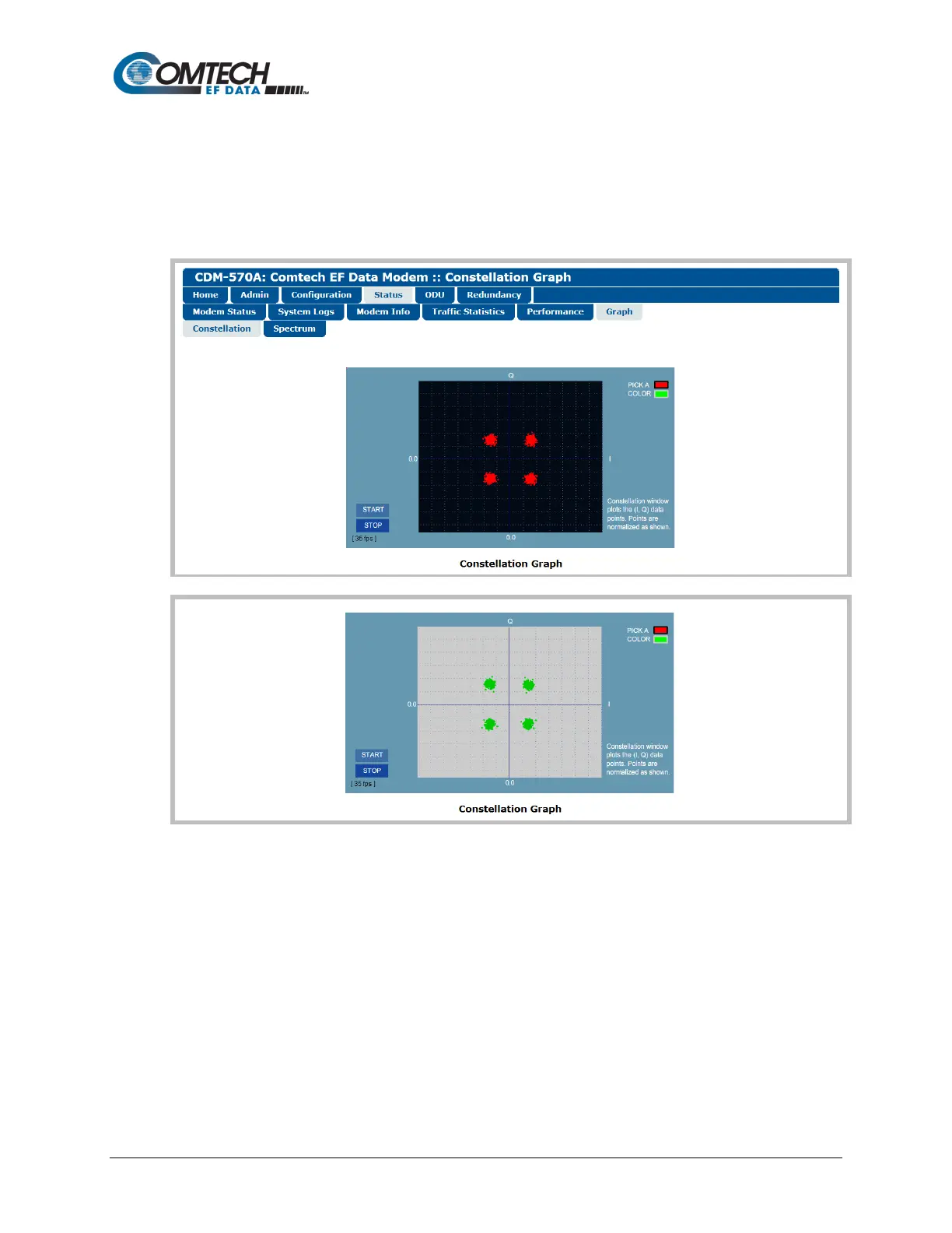 The Graph pages provide you with real-time visual monitoring of modem signal operation. Click