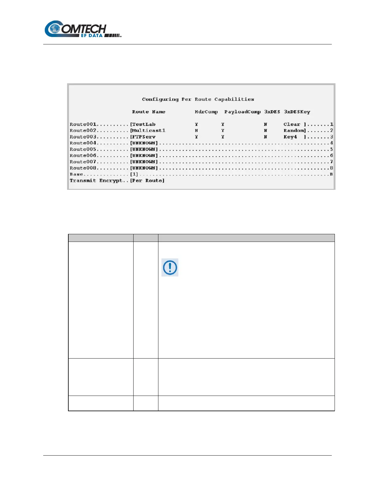 Select the Route Number to configure Header Compression (HdrComp) and Payload