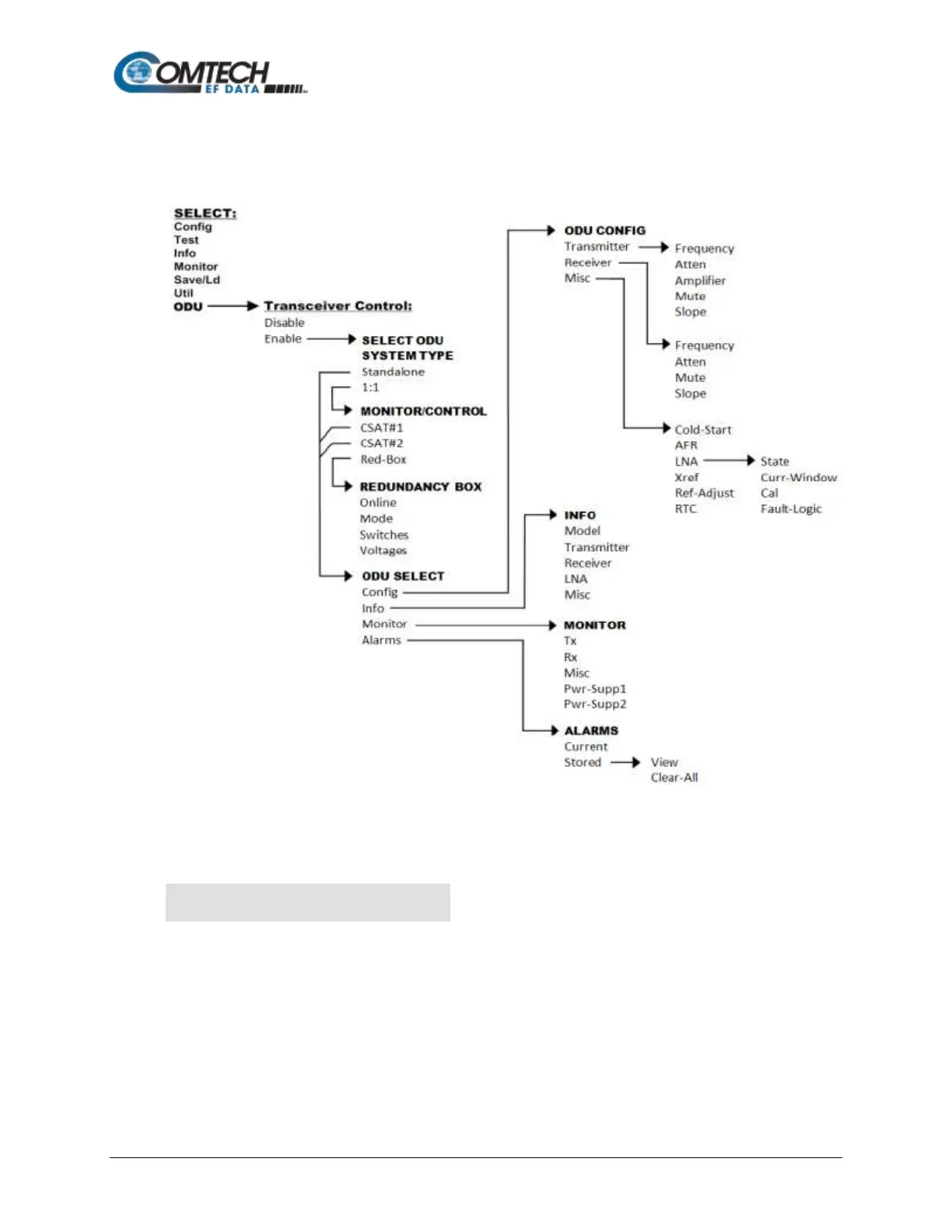 Figure 10-3. ODU: CSAT-5060 Transceiver Menu Tree
