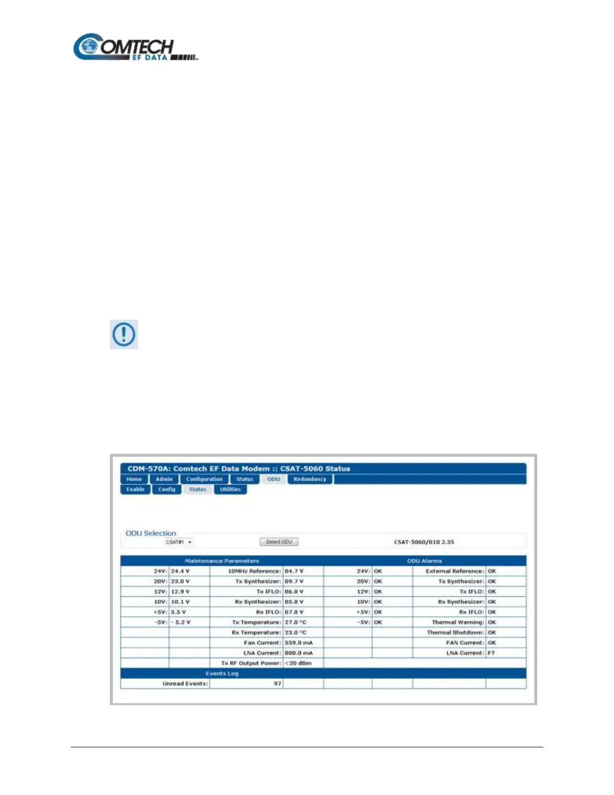 ODU. Use this page to review read-only status information pertaining to the CSAT-5060