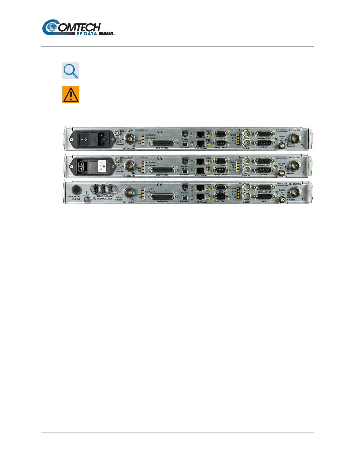 • For the CDM-570A – (2X) BNC female “Rx” (at far left) and “Tx” (at far right) connectors