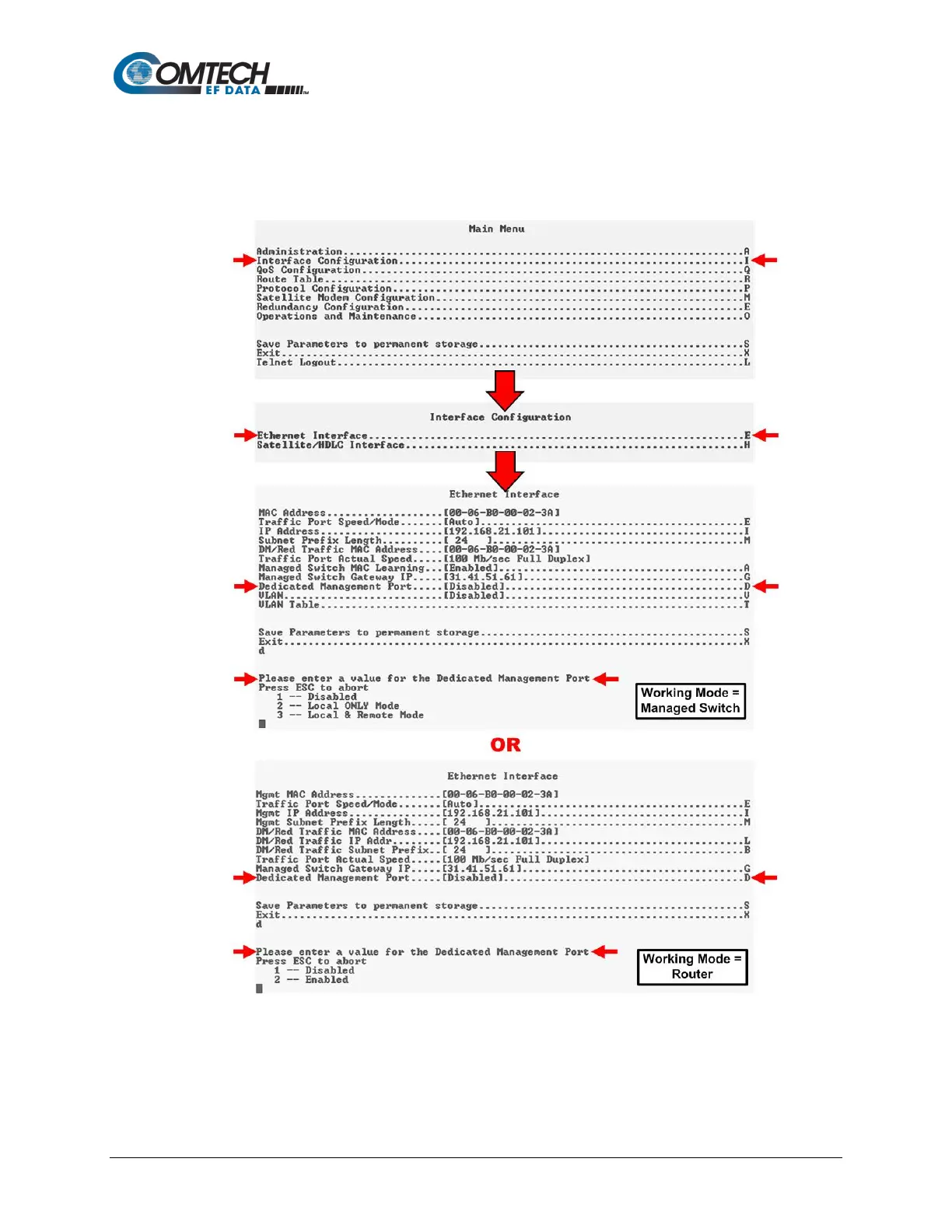 b. If you are in Router Mode, press ‘2’ to enable Dedicated Management Port operation.