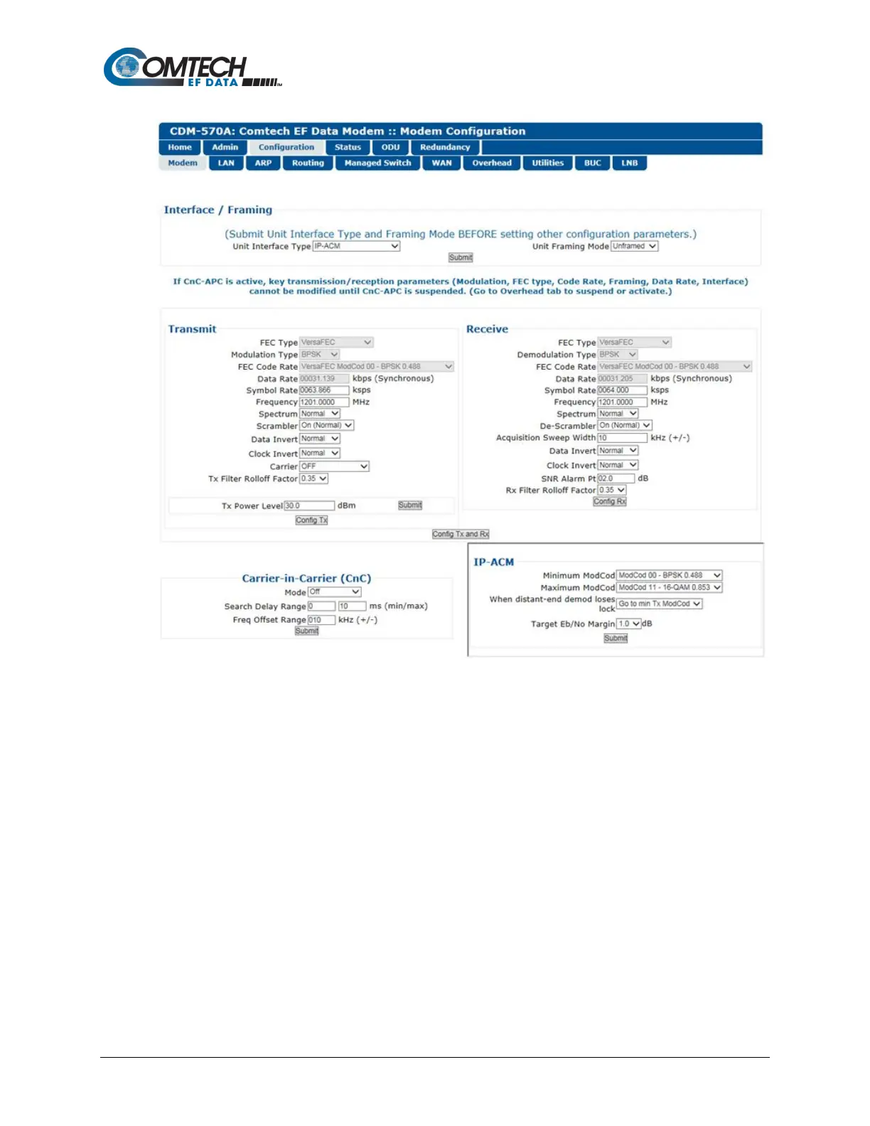 Figure 7-16. Configuration | Modem | IP-ACM (VersaFEC ACM) Page