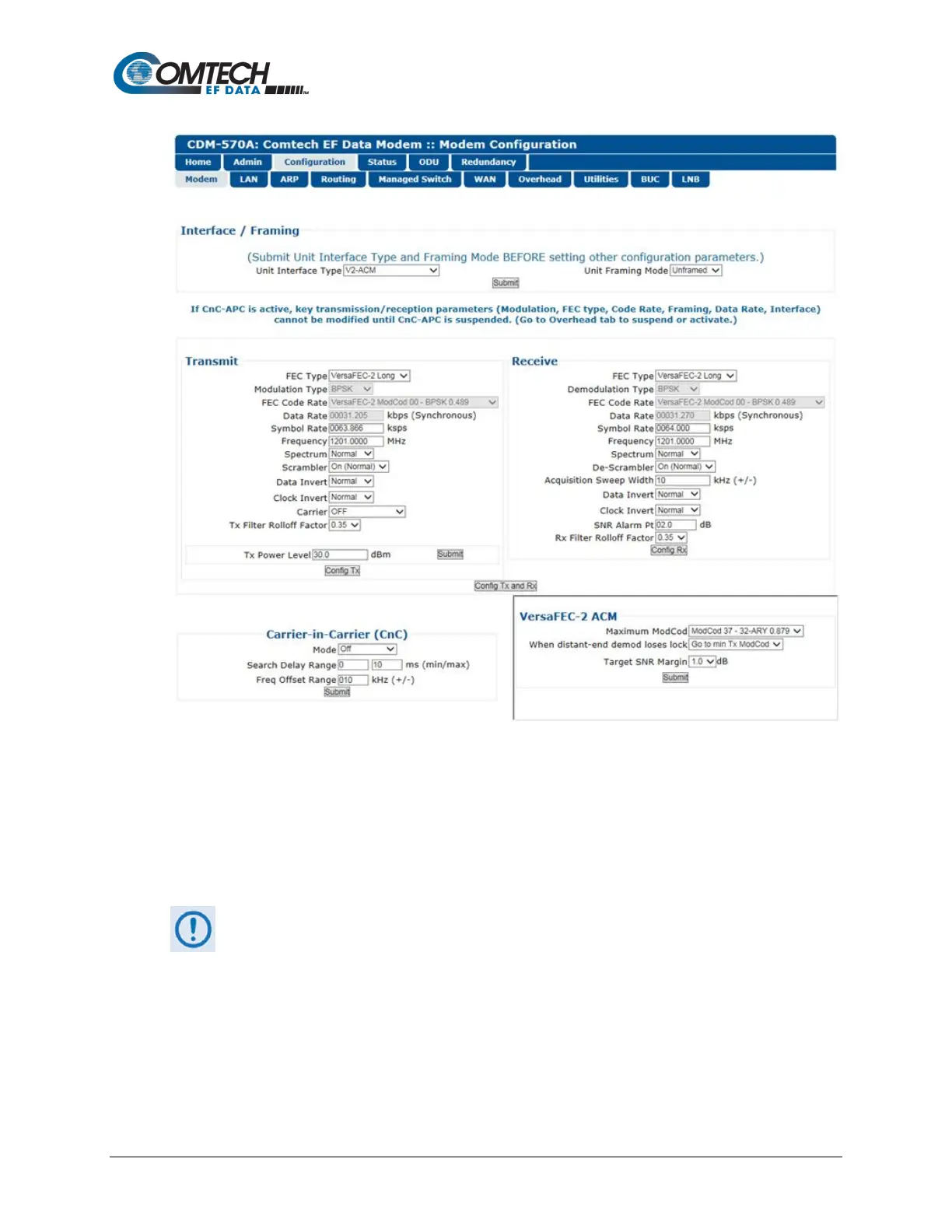 Figure 7-17. Configuration | Modem | VersaFEC-2-ACM (V2-ACM) Page