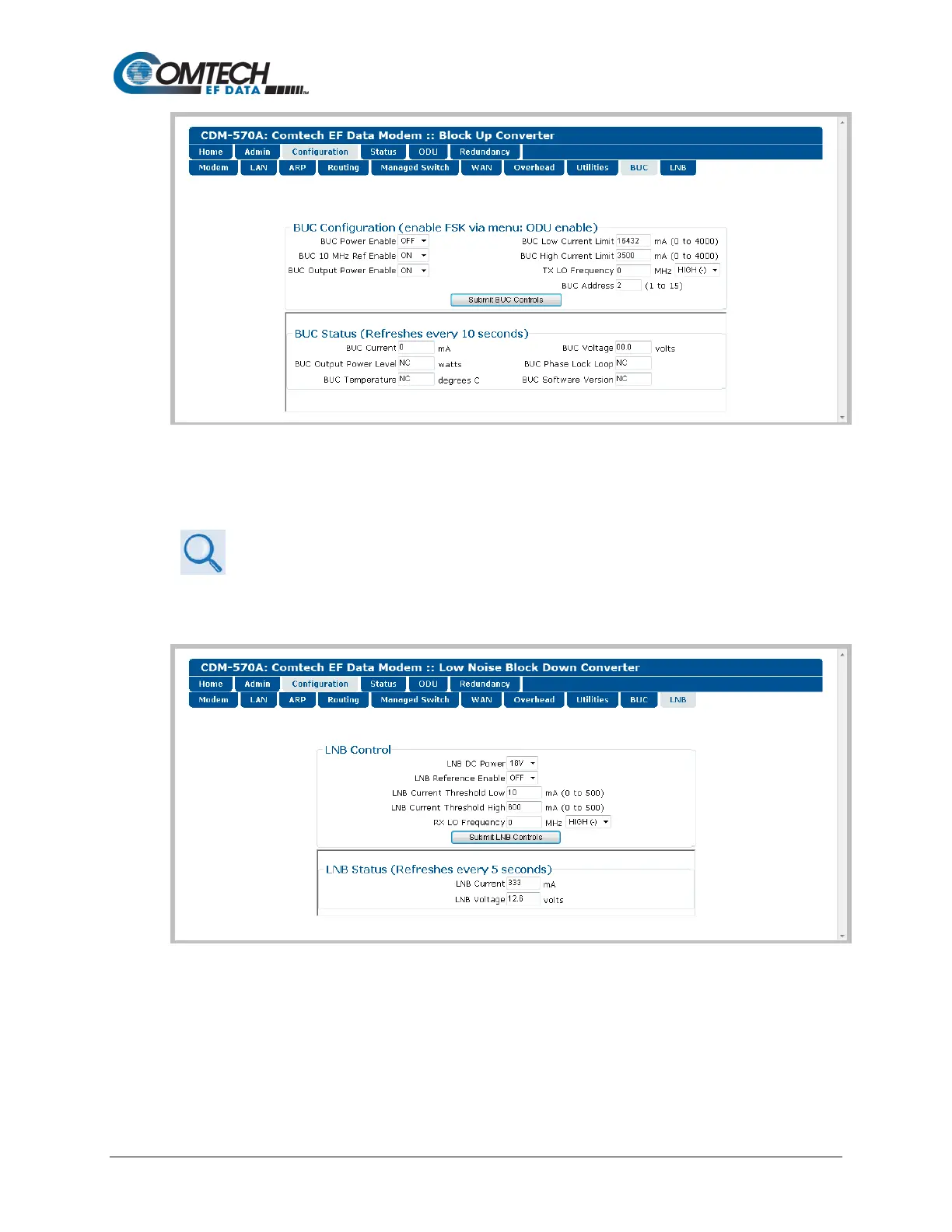 When a LNB is connected to a CDM/R-570AL (L-Band) Satellite Modem, you may use this page