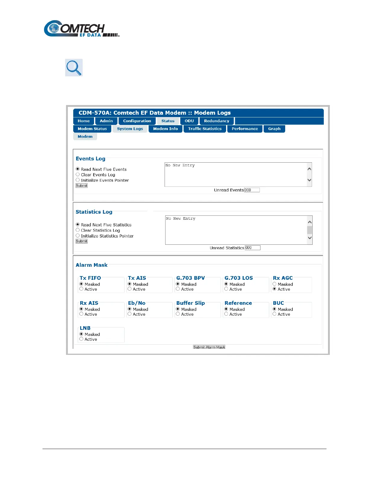 Comtech EF Data CDM-570AL - Status | System Logs | Modem