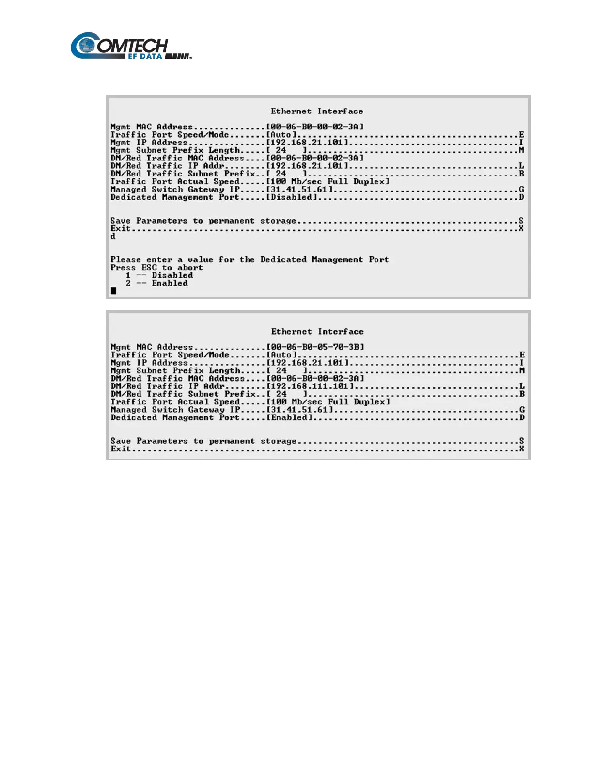 (BOTTOM) Dedicated Management Port = ENABLED