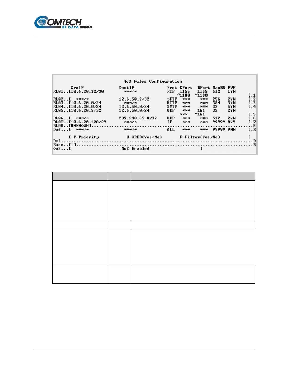 Comtech EF Data CDM-570AL - Qos Configuration > Qos Rules Configuration; Qos Rules Configuration (Max;Priority Mode)