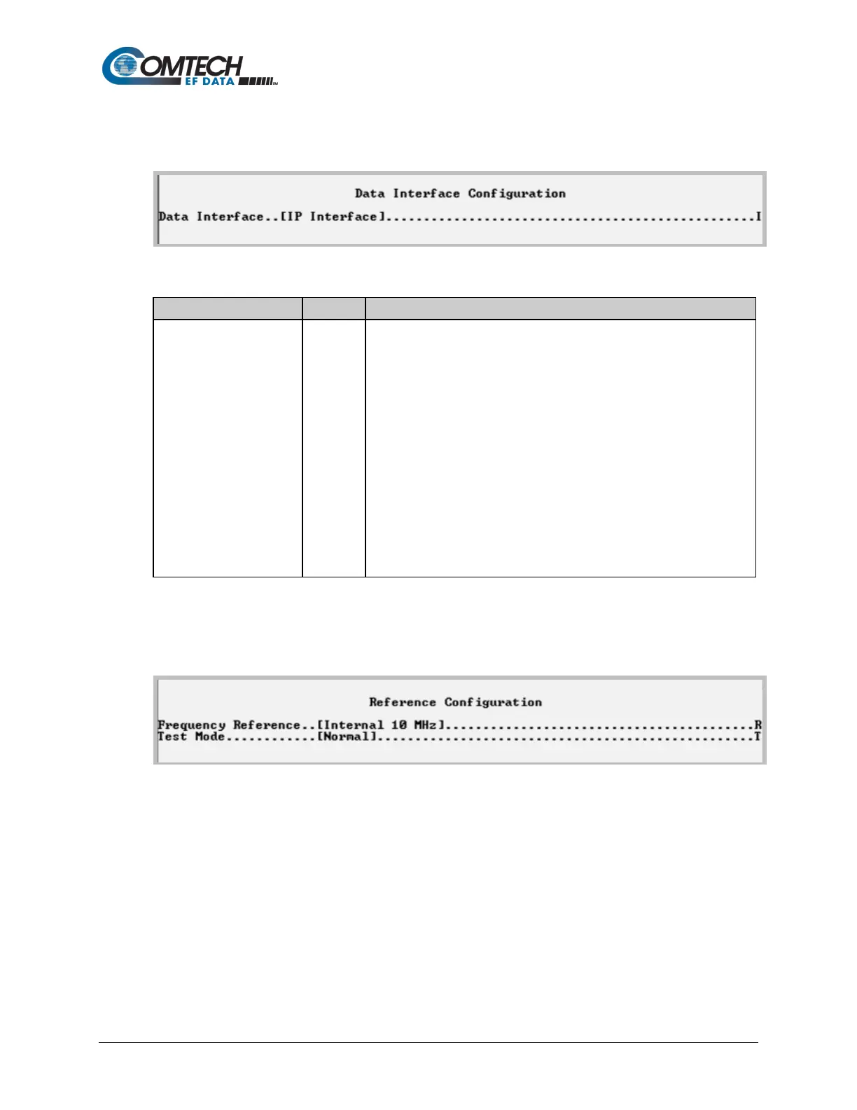 Comtech EF Data CDM-570AL - Satellite Modem > Configuration > Data Interface Configuration; Satellite Modem > Configuration > Reference Configuration