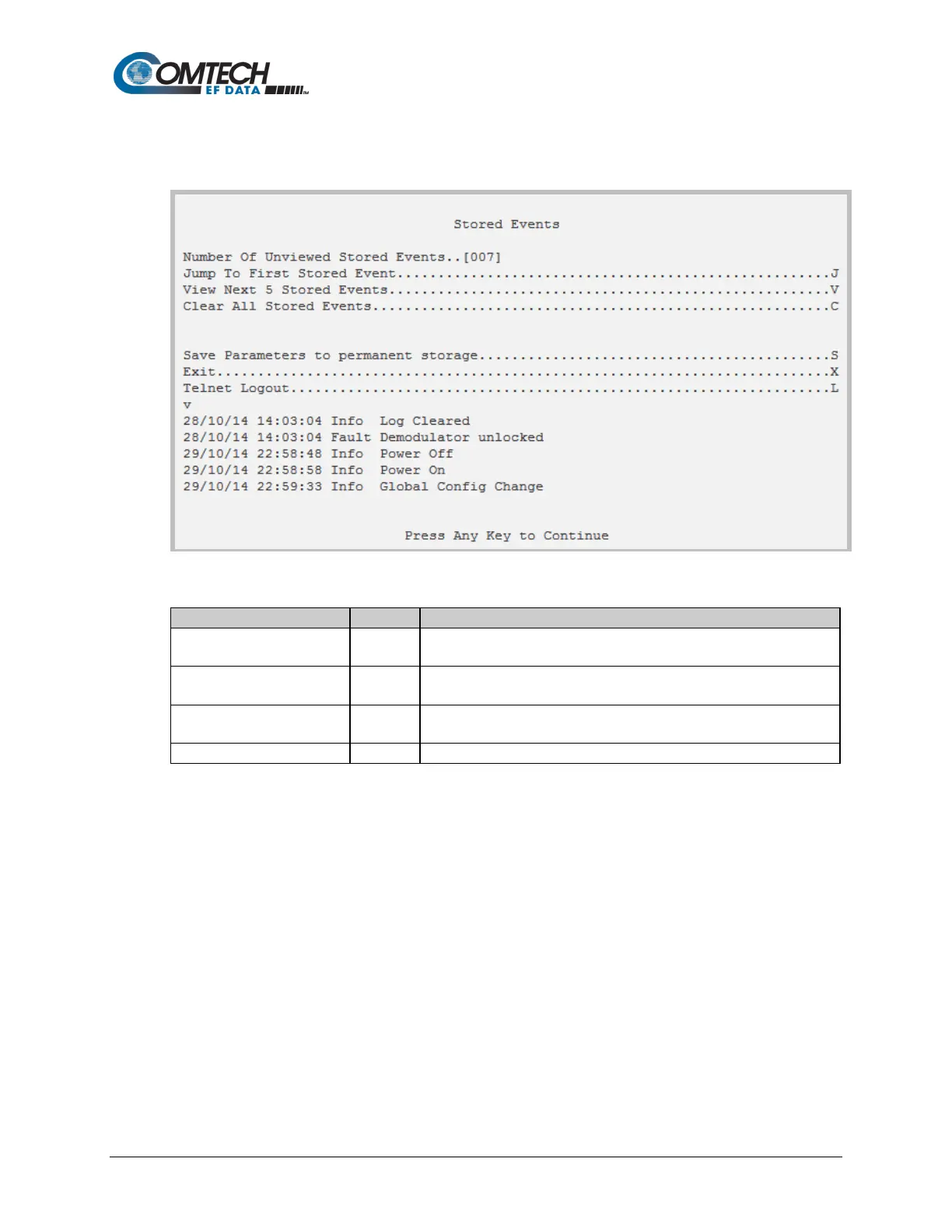 Comtech EF Data CDM-570AL - Satellite Modem > Monitor > Stored Events