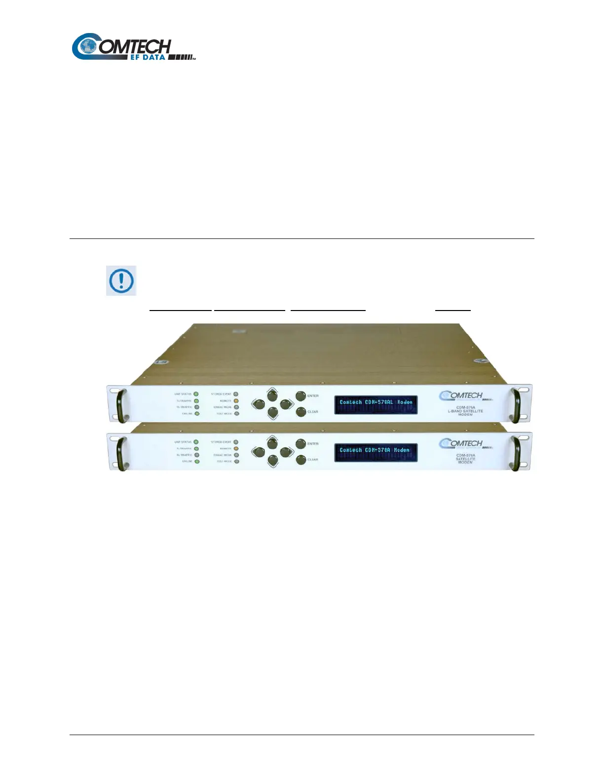 570L/CDMR-570L (L-Band) or CDM-570 (70/140 MHz) Satellite Modems. Apart from the IF