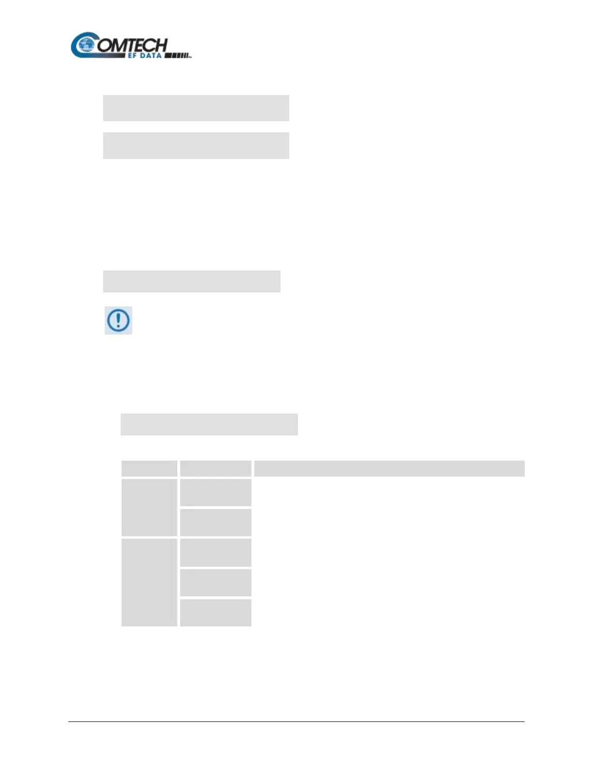 and settings will vary and they are dependent on the ODU configuration in use.