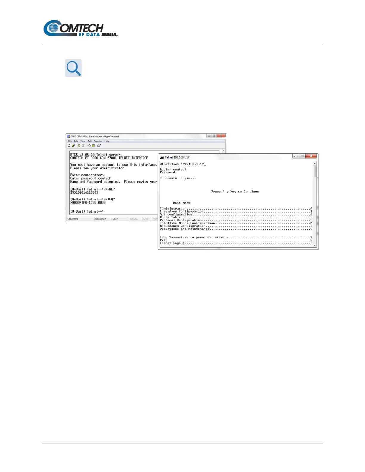 Comtech EF Data provides a Telnet interface for the purpose of equipment monitor and control