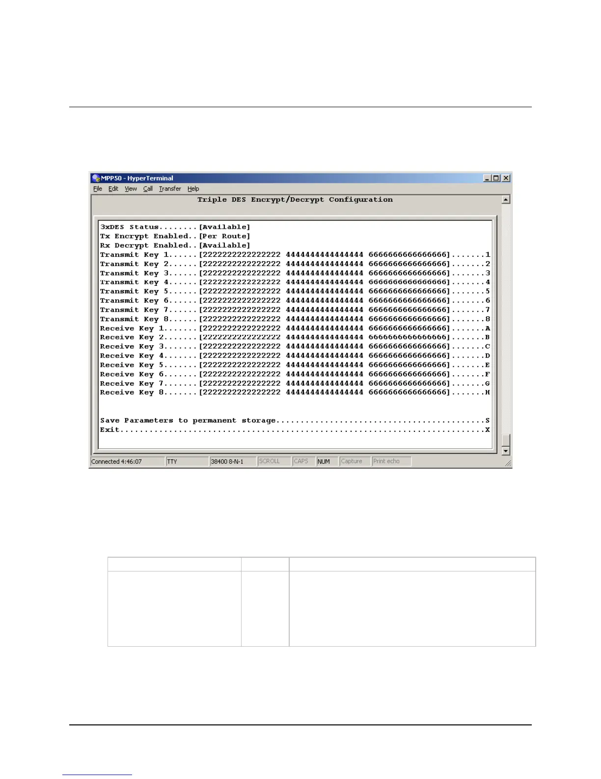 Note: This menu will only be accessible if the 3xDES FAST feature has been purchased and