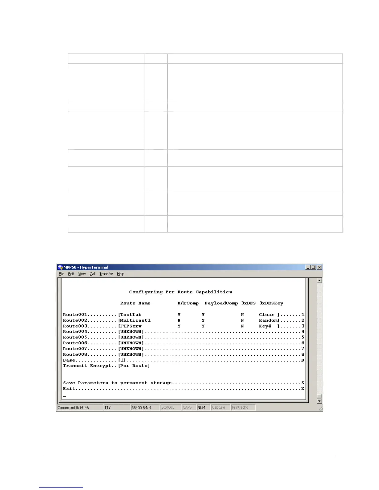 information displayed is: Route Name, DestIP/SnetBits, Next