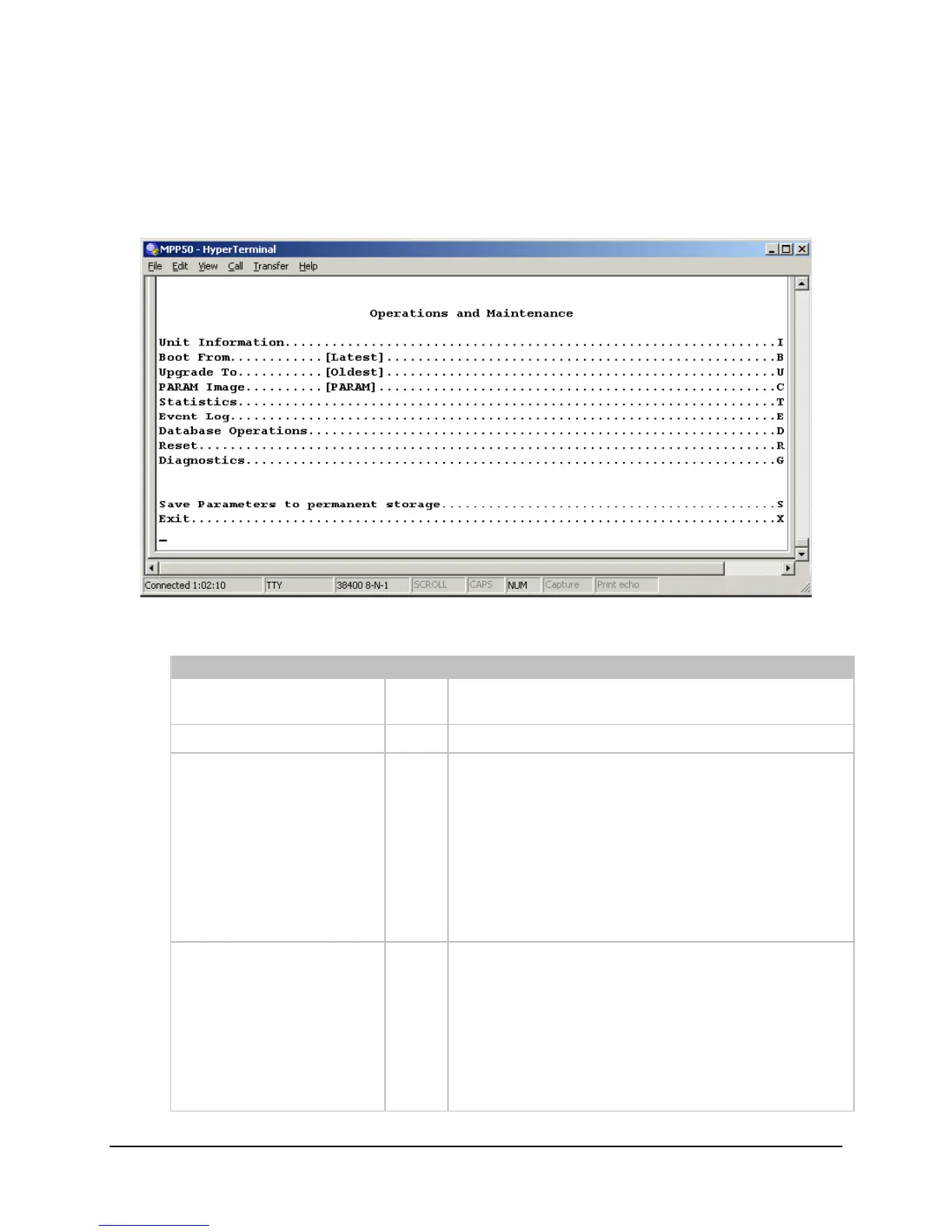 The Operations and Maintenance page is activated from the Main Menu page.