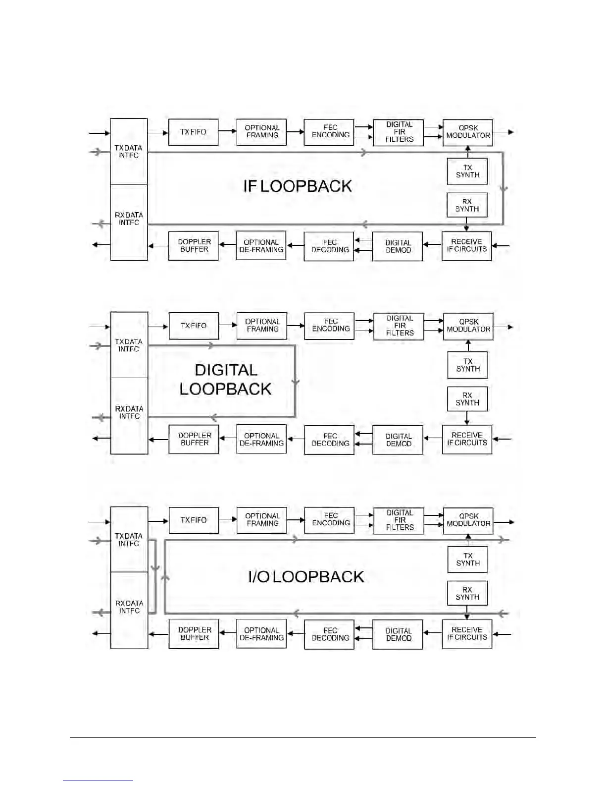 Figure 5-3 illustrates the IF, Digital, and I/O Loopback Test modes.