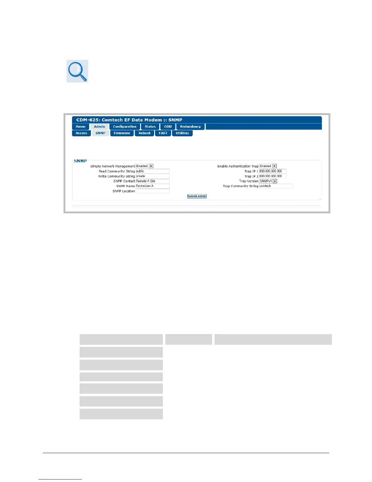 CDM-625 SNMP (Simple Network Management Protocol) feature.
