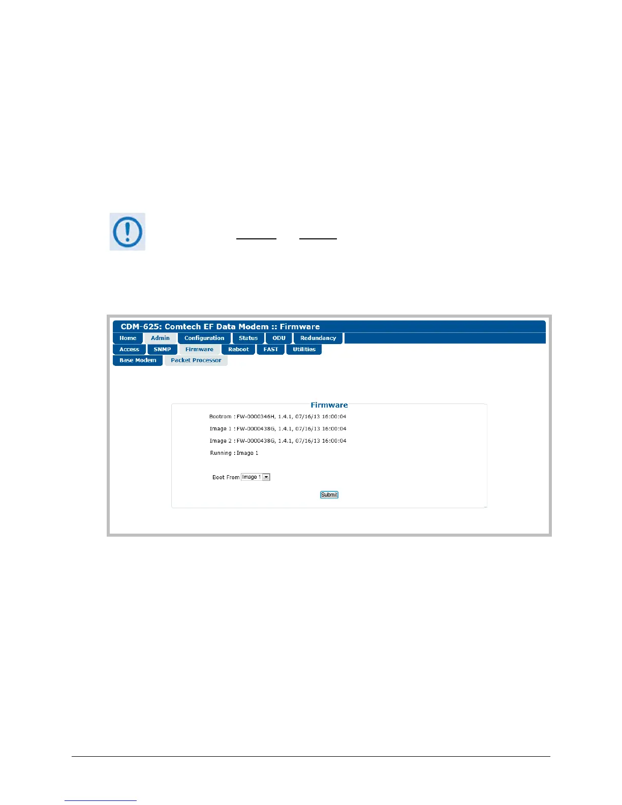 Use the drop-down list to select Image 1 or Image 2 as the image to use upon next reboot, and