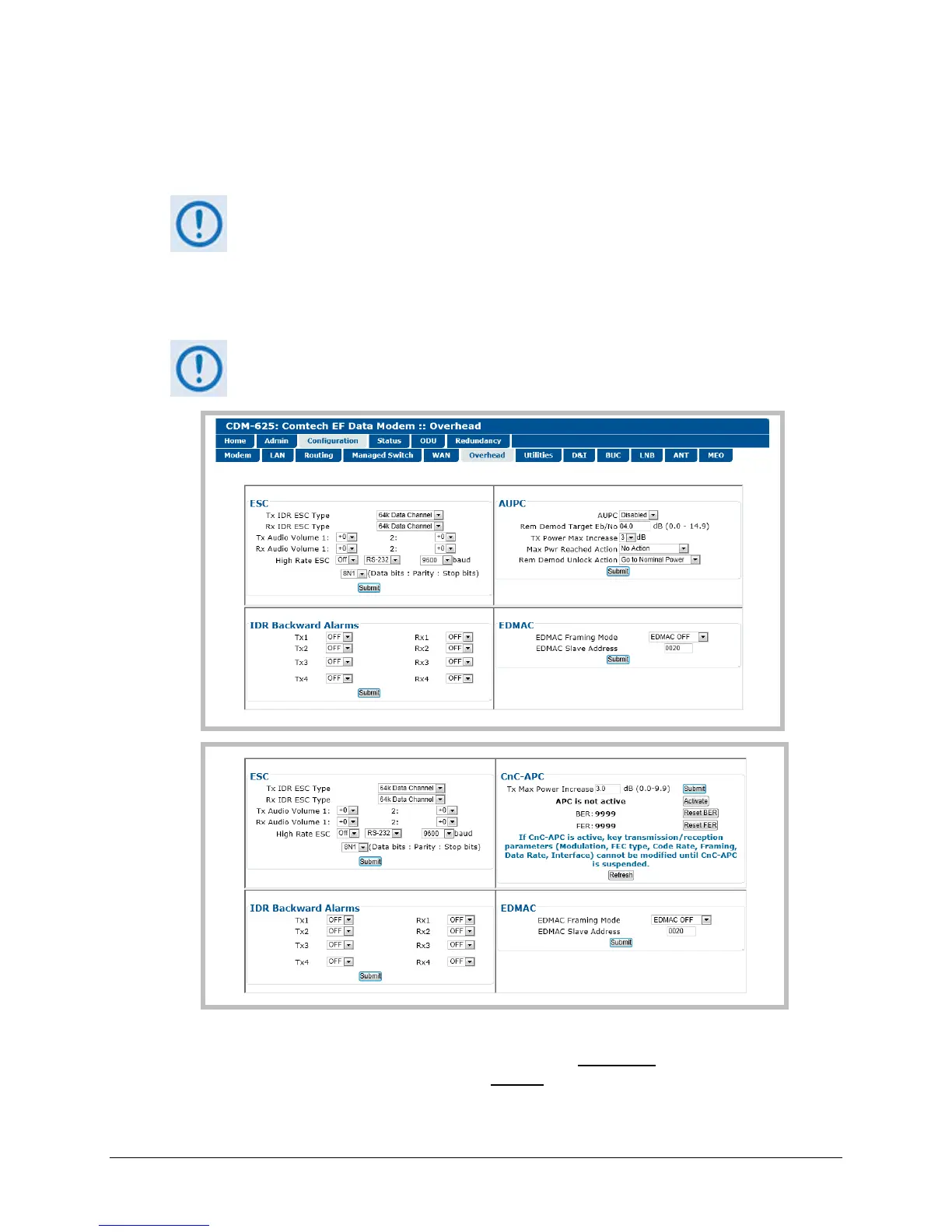 (Bottom) Page with CnC-APC mode selected (Banner, Menu Bar not shown)
