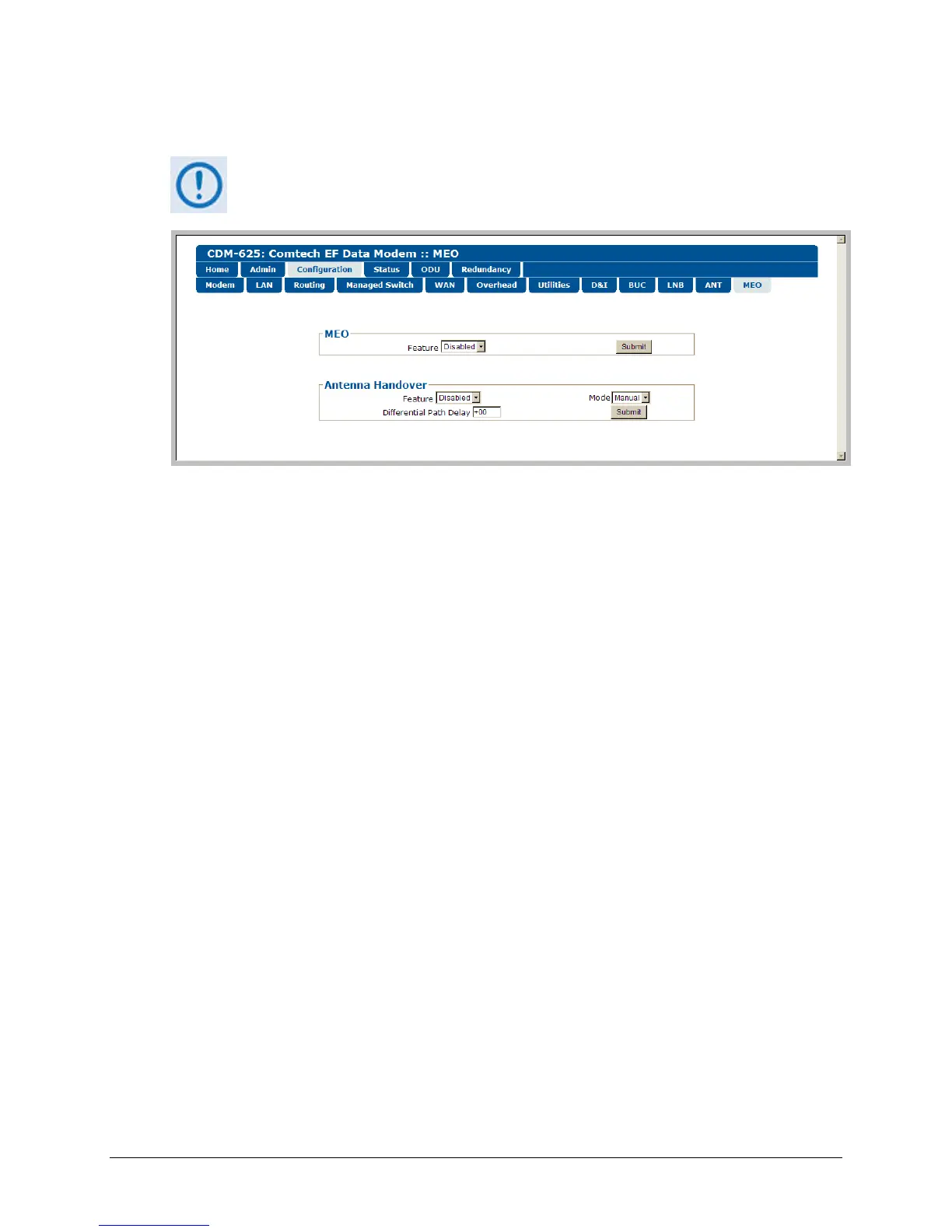 in an Antenna Handover System when the MEO (Medium Earth Orbit) feature is enabled.