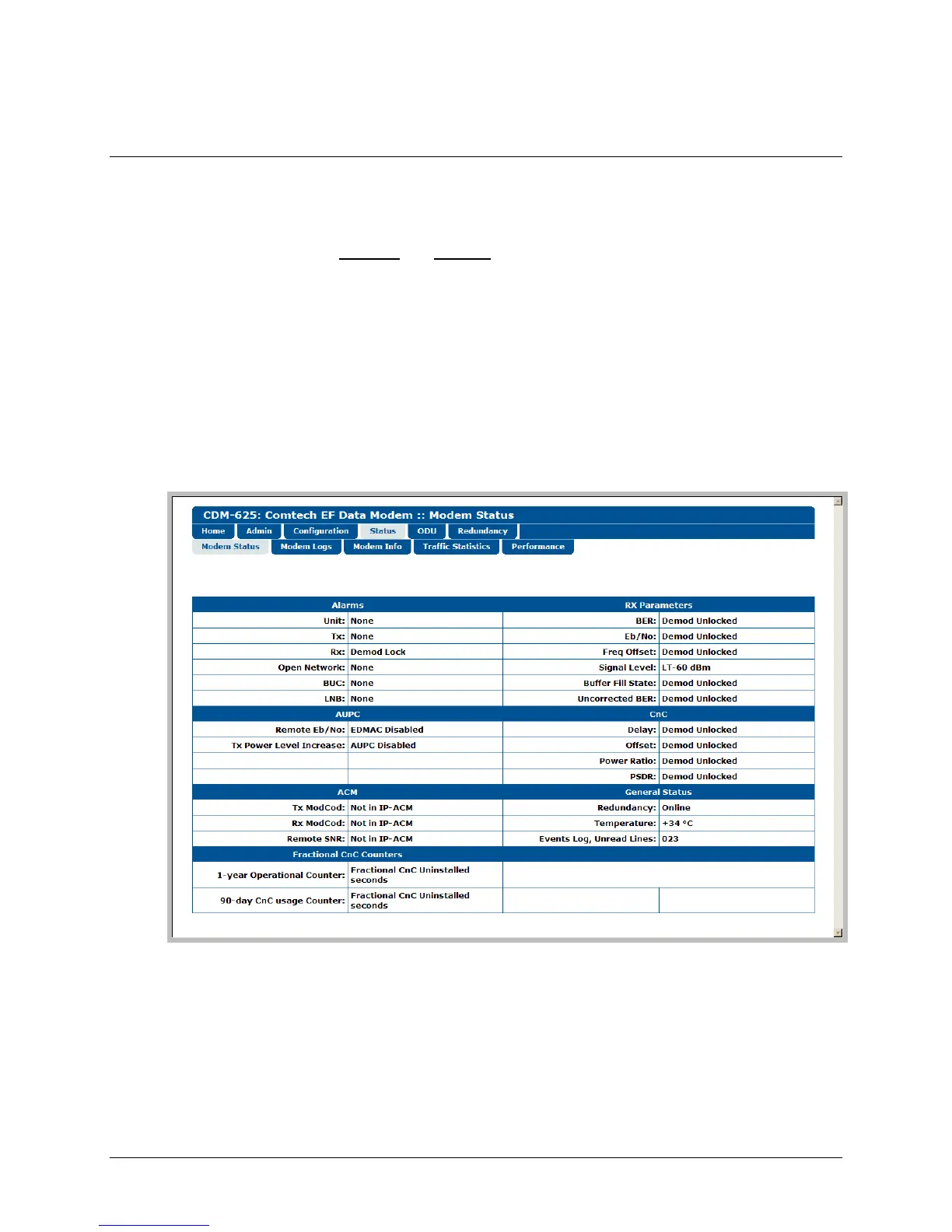 The Status pages provide you with status, event logging, and operational statistics windows.