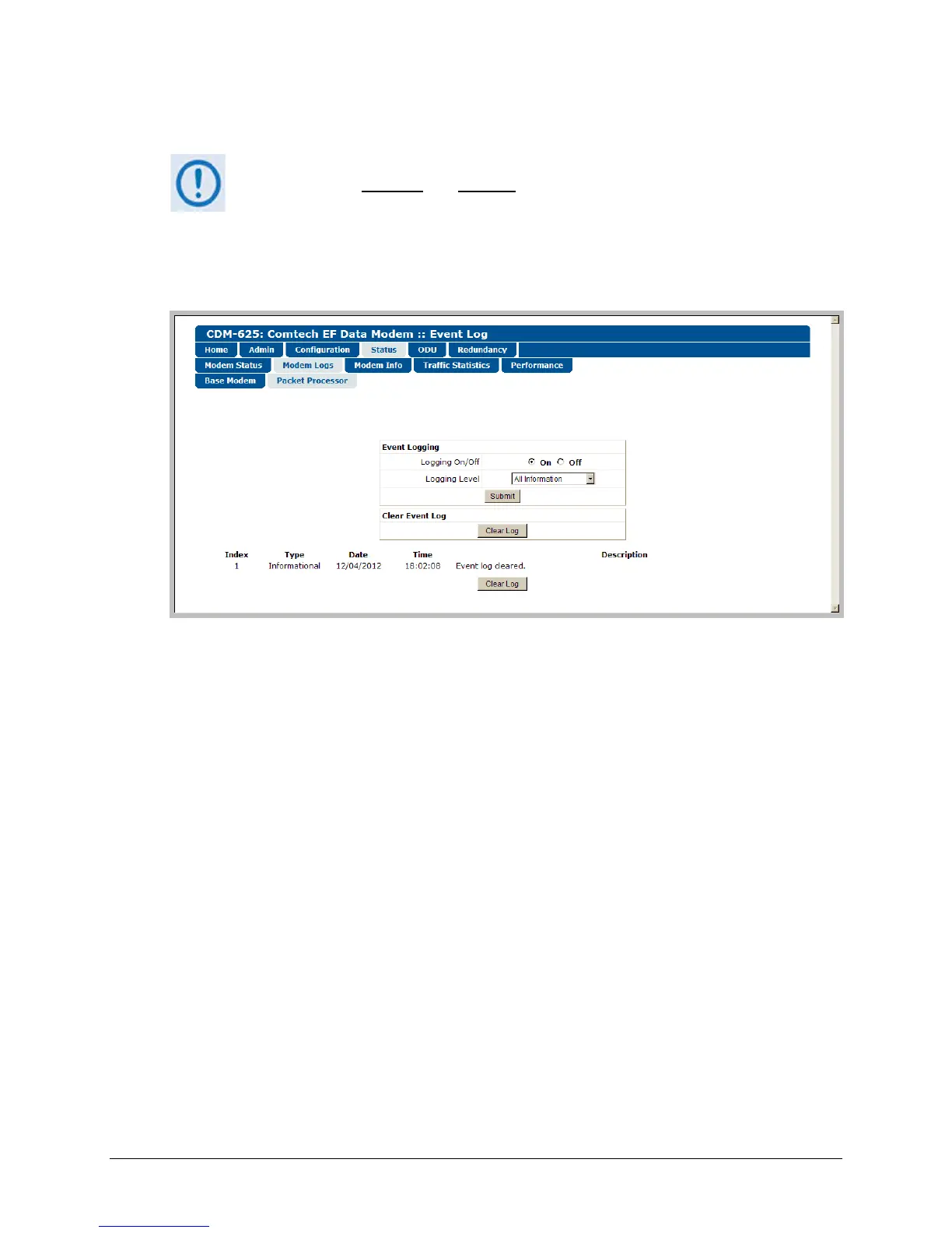 Figure 6-35. Status | Modem Logs | Packet Processor page