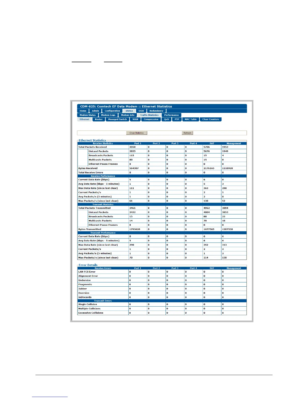 Click [Clear Statistics] to clear all Ethernet statistics from the buffer.
